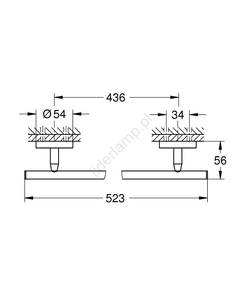 • Możliwość montażu przez wiercenie (śruby i kołki rozporowe w zestawie) lub na klej (klej GROHE QuickGlue A2 41 128 000 sprzedawany oddzielnie).
