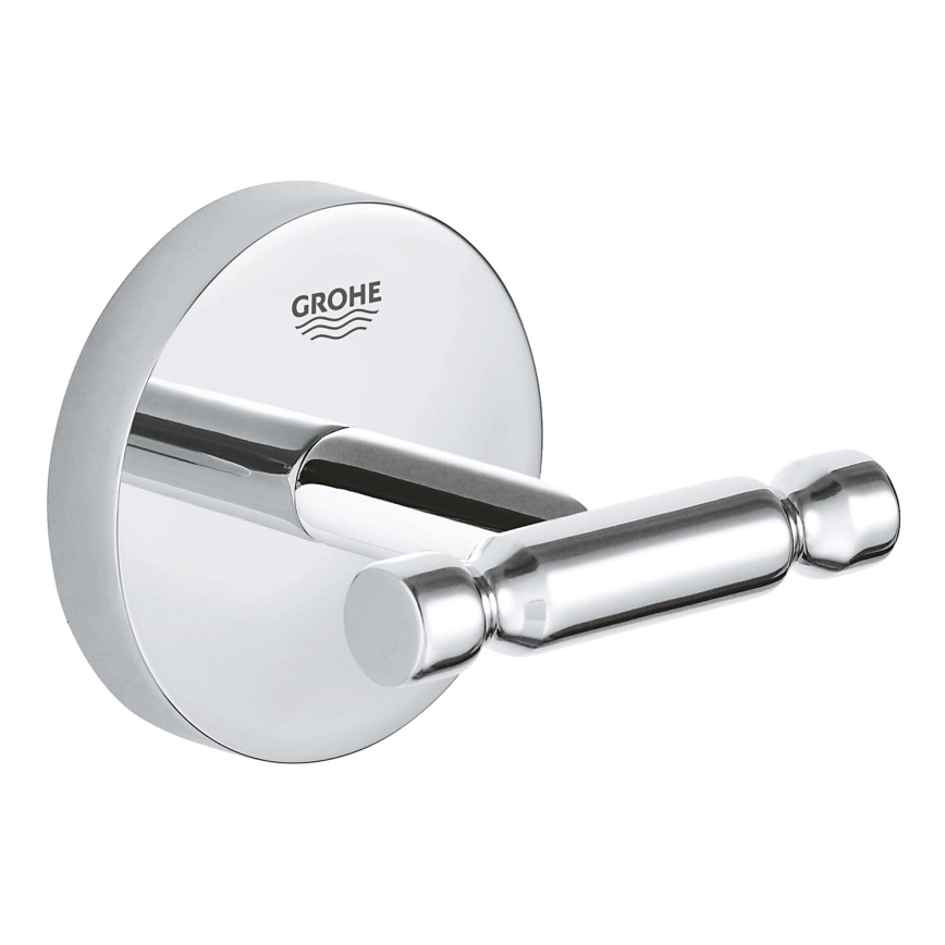 • Wysokiej jakości metalowy haczyk na szlafrok z eleganckim chromowanym wykończeniem GROHE Long-Life Shine zapewniającym długotrwały blask.