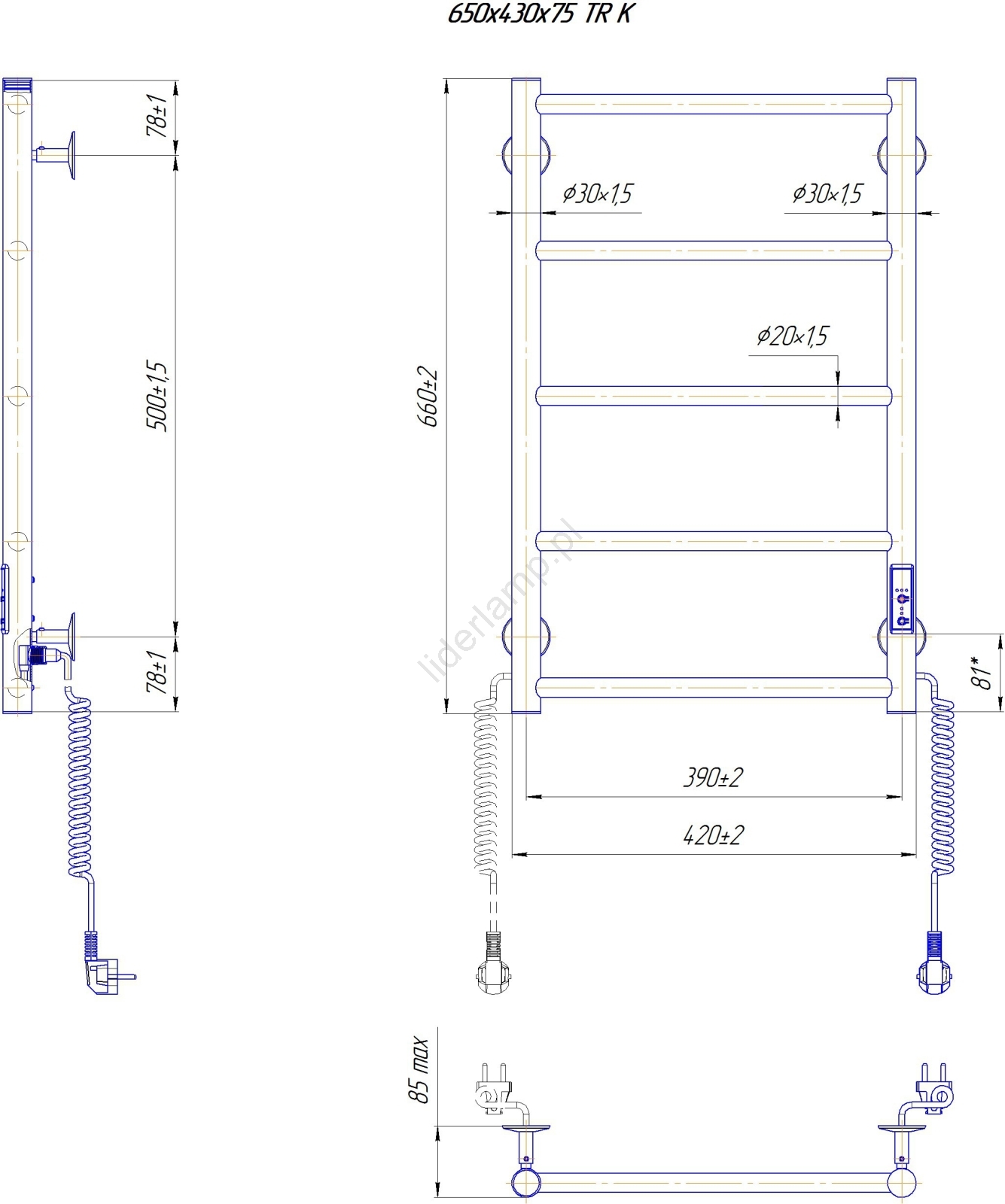 ReviewsWidget_ReviewsAboutUs Grzejnik drabinkowy do łazienki CLASSIC 65W/230V 65x43 cm stal nierdzewna/czarny prawy | Liderlamp.p