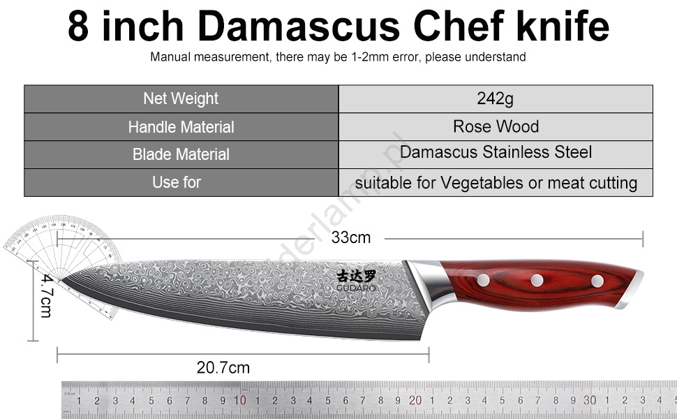 • Nóż szefa kuchni 8" (grubość 2,5 mm).