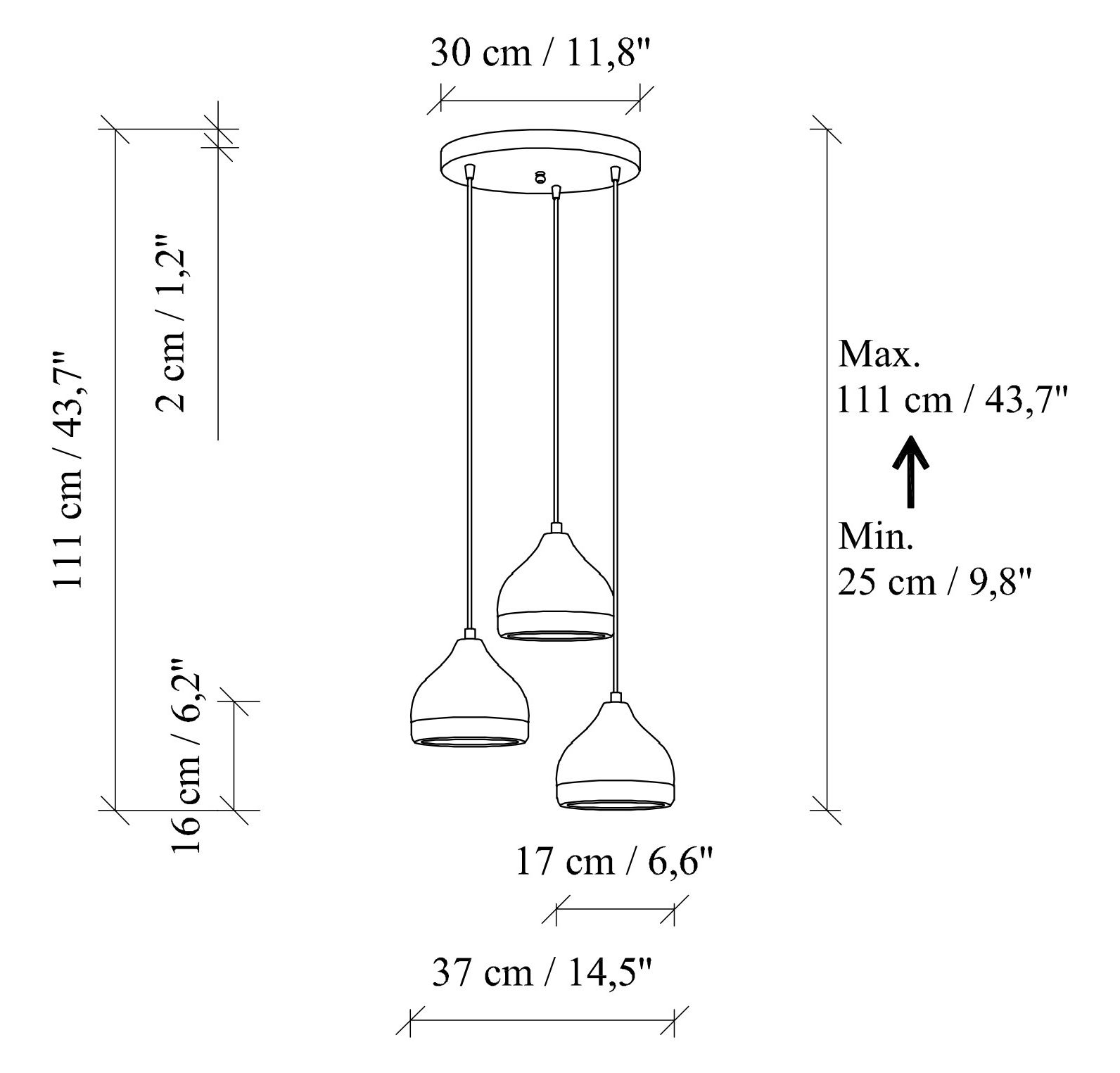 • Żyrandol na lince YILDO 3xE27/40W/230V