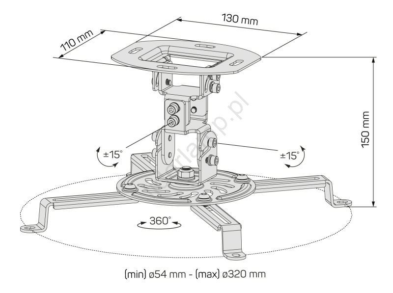 • Kompatybilny z projektorami o rozstawie otworów montażowych od 54 mm do 320 mm.