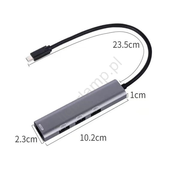 • Praktyczny hub USB-C: rozszerza jeden port USB-C w laptopie lub tablecie do czterech portów USB-A — idealny do myszy, klawiatury, pendrive'a i dysku zewnętrznego.