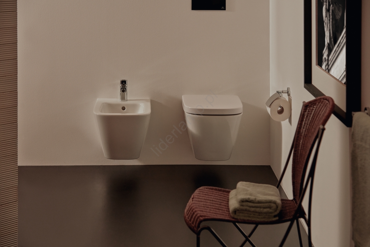 • Wyposażony w nowoczesną technologię spłukiwania RimLS+ (technologia bez kołnierza spłukującego), która zapewnia wysoki poziom higieny i ułatwia czyszczenie.