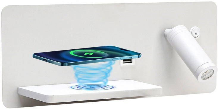 • Immax 08286L - LED kinkiet punktowy z półką, portem USB i ładowaniem bezprzewodowym Be PREPARE LED/3W/230V + LED/3W biały