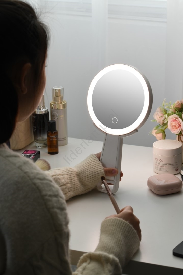 • Stojak jest obrotowy i pewnie utrzymuje pozycję pod dowolnym kątem po obu stronach, co zapewnia maksymalną elastyczność przy makijażu i precyzyjnej pielęgnacji skóry.
