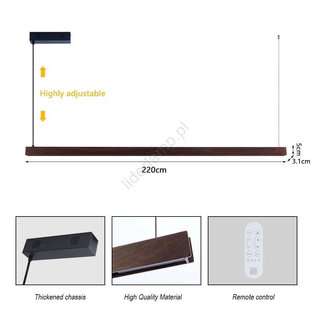 • Immax NEO 07305L - ściemnialny żyrandol na linkach MADEIRA LED/44W/230V Wi-Fi Tuya 202 cm dąb + zdalne sterowanie