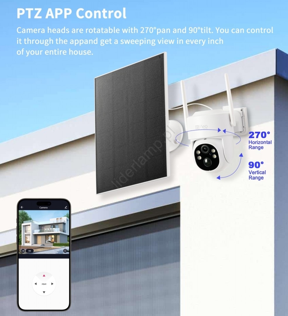 • Dzięki panelowi solarnemu o mocy 5 W oraz wbudowanej baterii o pojemności 9000 mAh jest całkowicie niezależna od zewnętrznego zasilania.