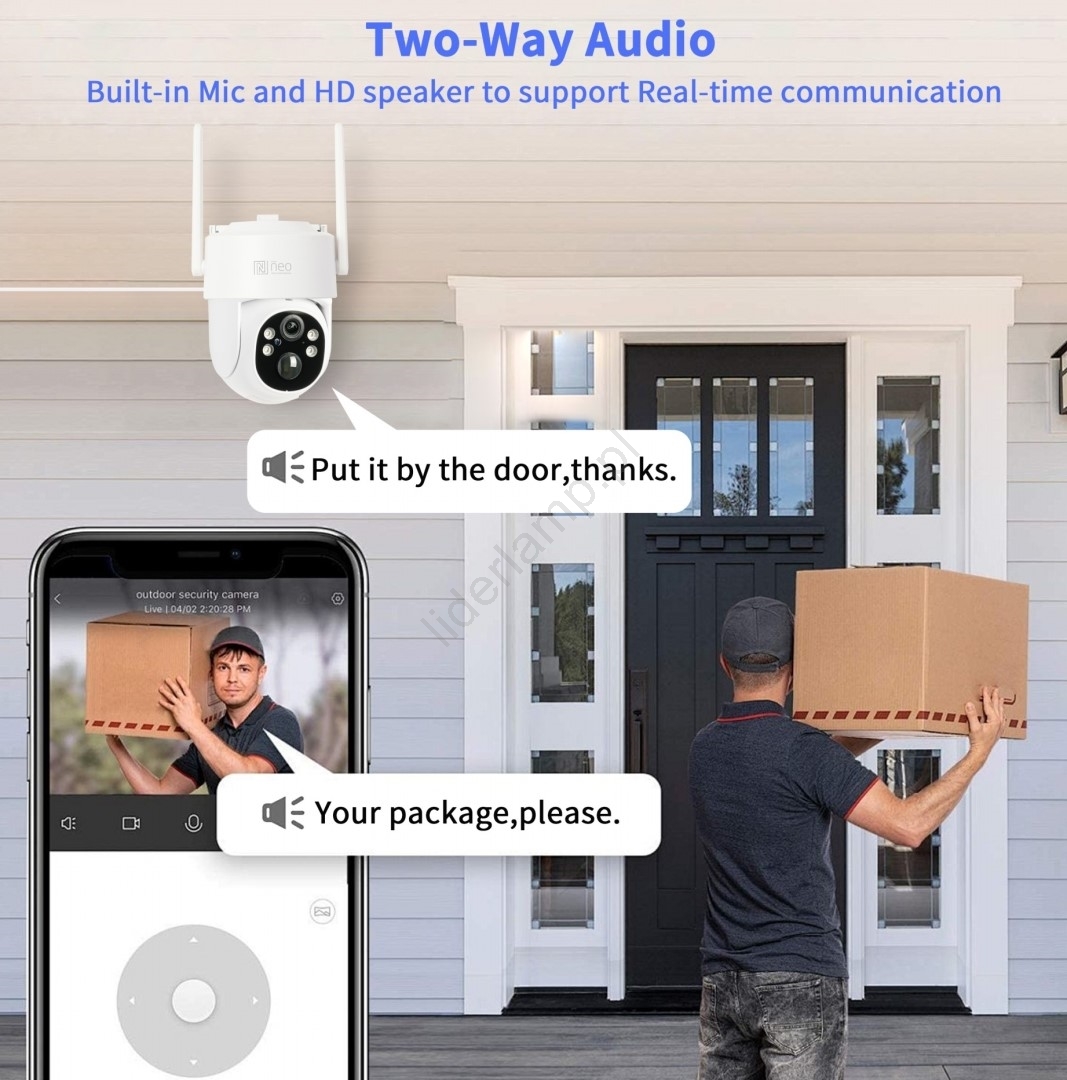 • Wbudowany czujnik PIR do wykrywania ruchu, zintegrowany mikrofon i głośnik pozwalają na dwukierunkową komunikację, a syrena zapewnia aktywną ochronę przed nieproszonymi gośćmi.