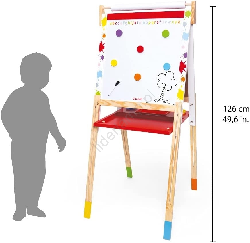 • Magnetyczna drewniana tablica Grafitti Splash jest regulowana na wysokość, dzięki czemu dopasowuje się i rośnie razem z dzieckiem.