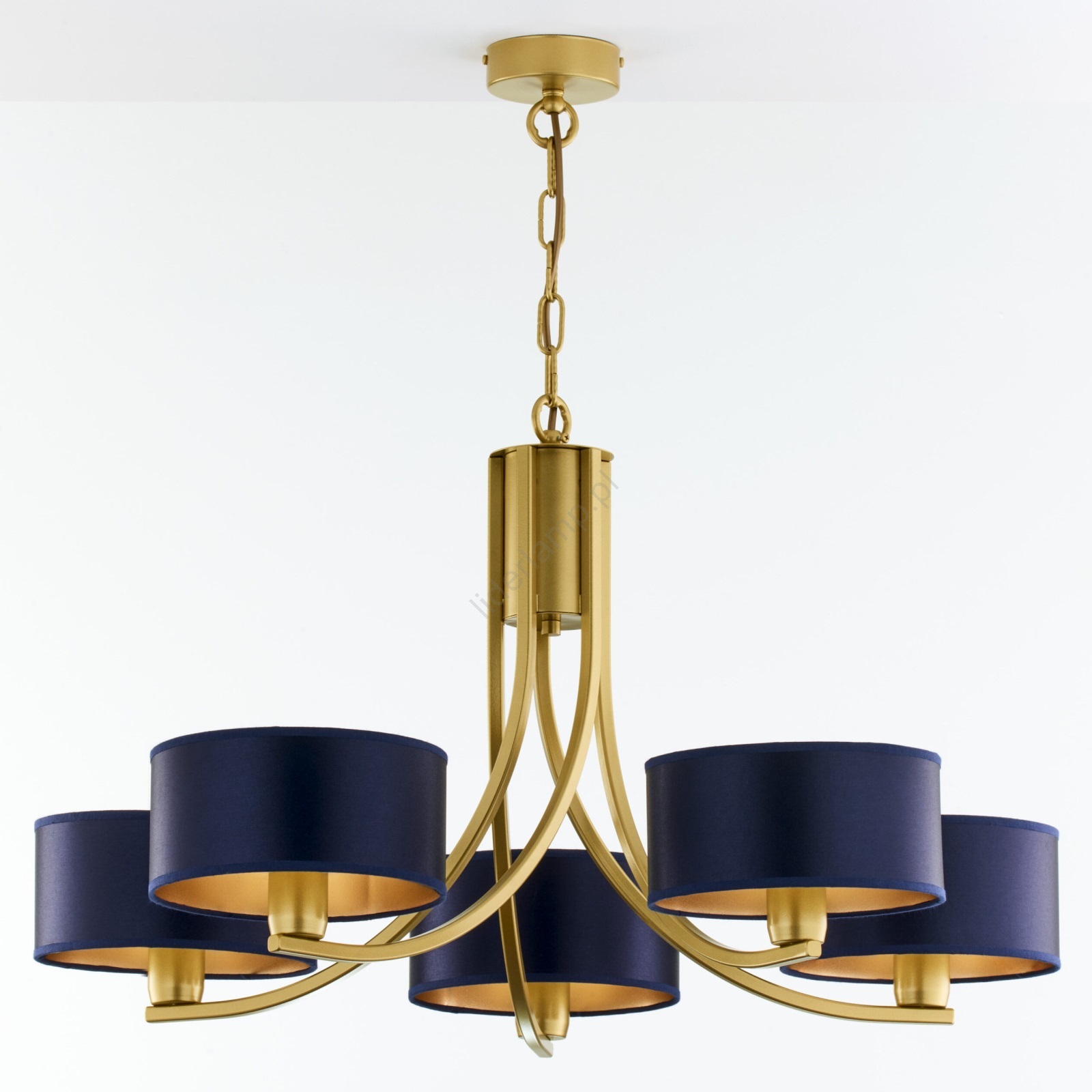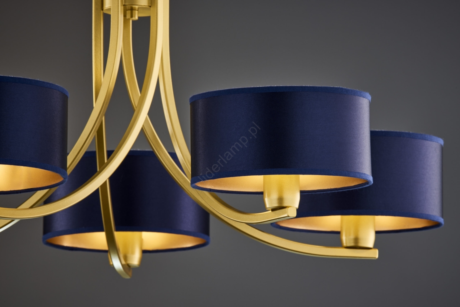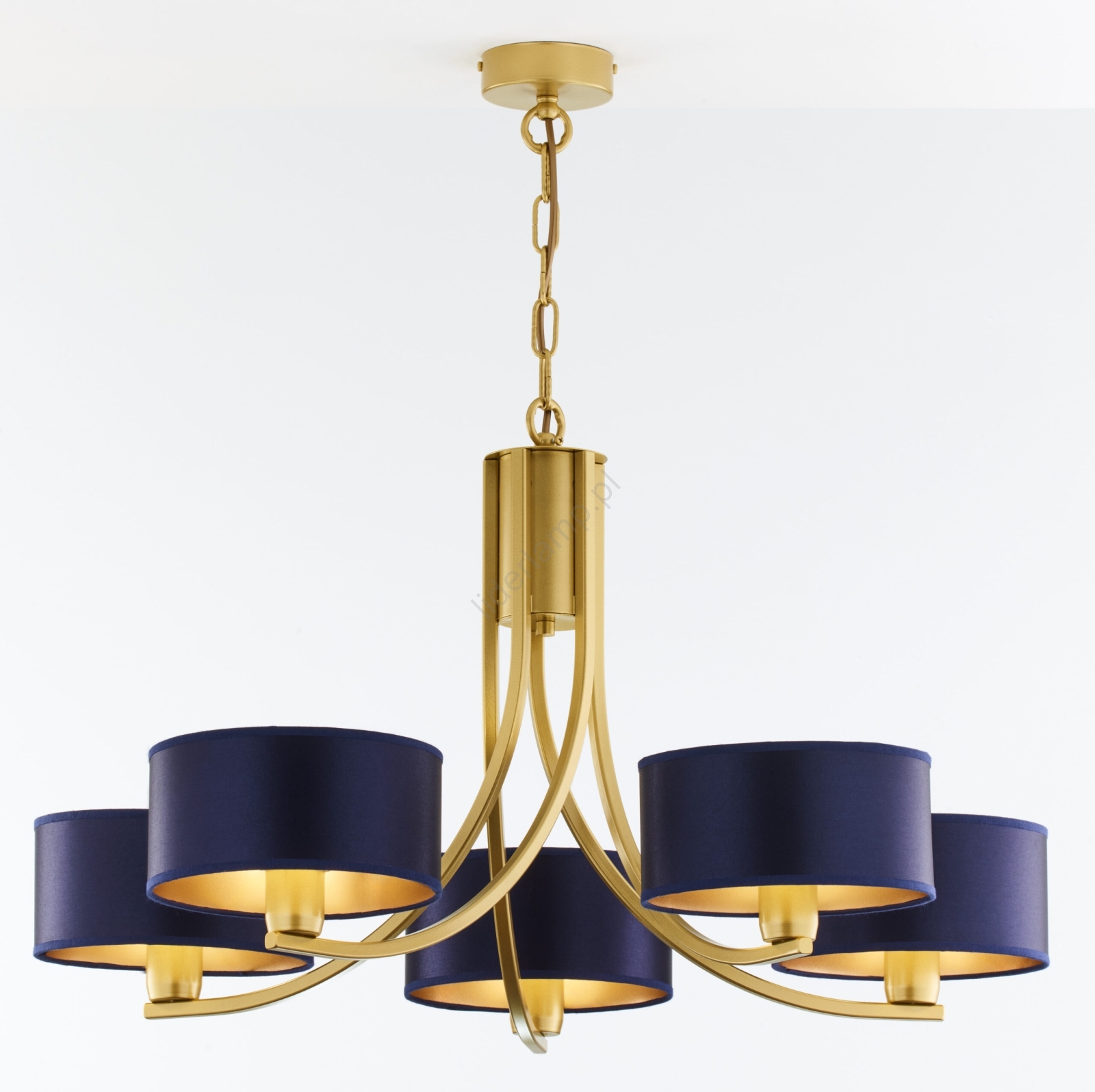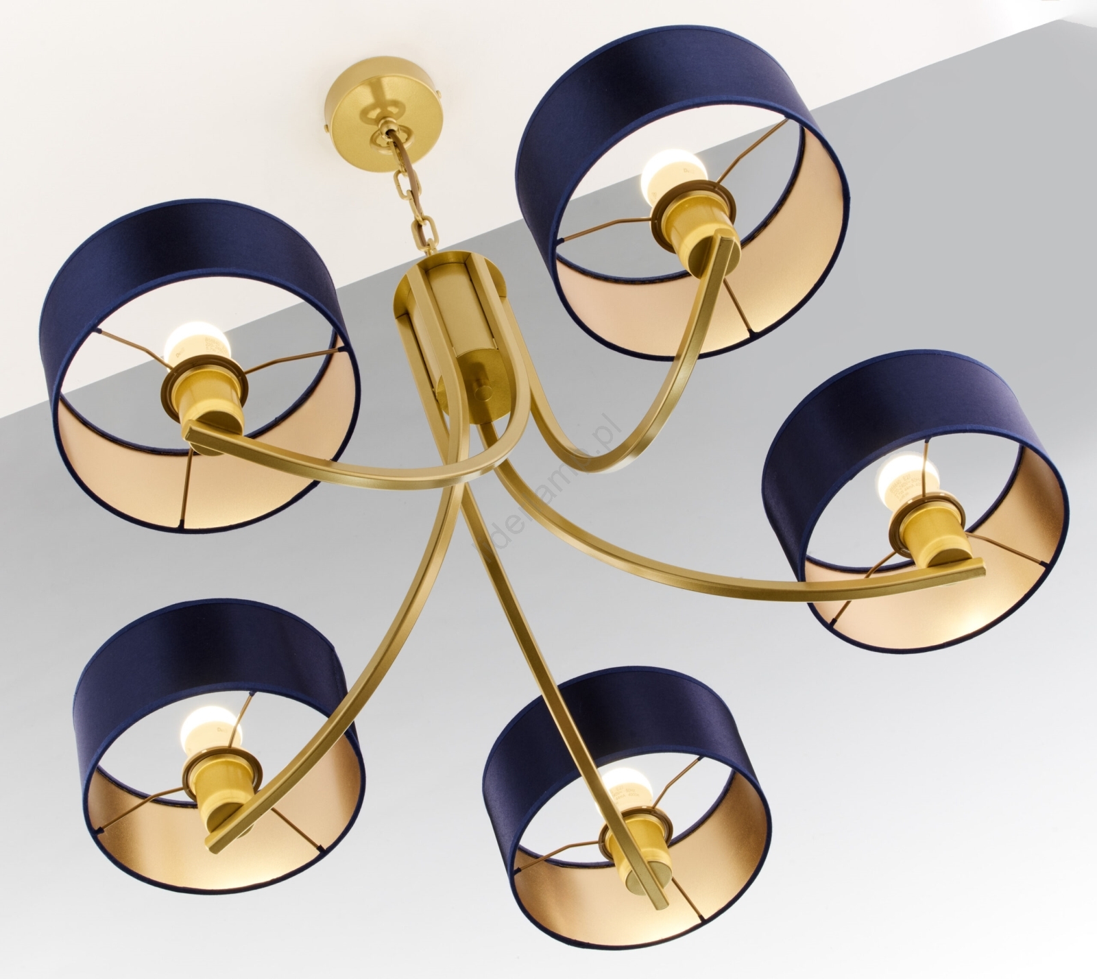 Jupiter 2094 - Żyrandol na łańcuchu ARTHUR 5xE27/15W/230V niebieski/złoty charakteryzuje się ładnym i funkcjonalnym designem.  Do lampy pasuje żarówka z trzonkiem E27. Tutaj kupisz inne żarówki w korzystnych cenach. Będziesz mieć ciekawy dodatek do swojego domu.