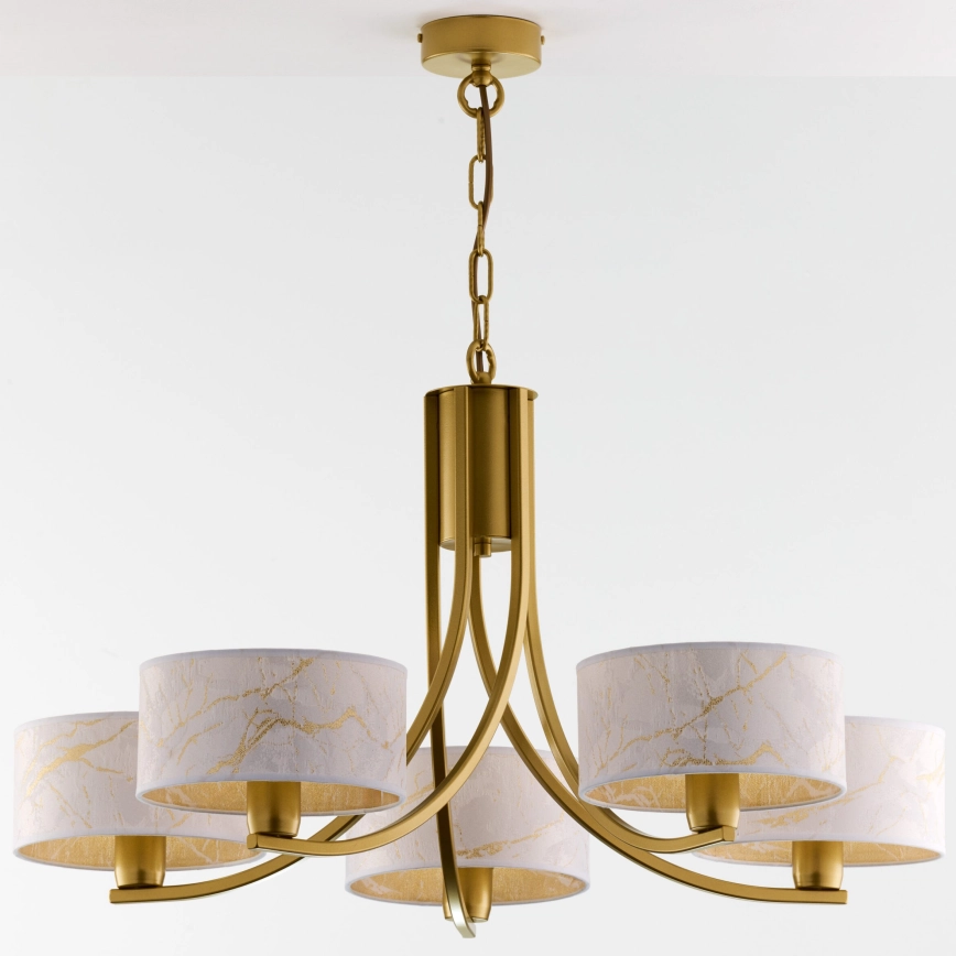 Jupiter 2097 - Żyrandol na łańcuchu ARTHUR 5xE27/15W/230V biały/złoty/dekor marmuru
