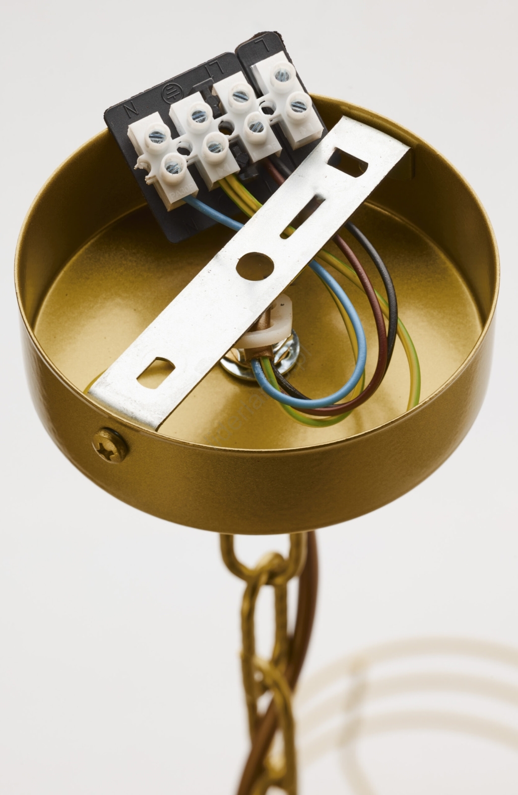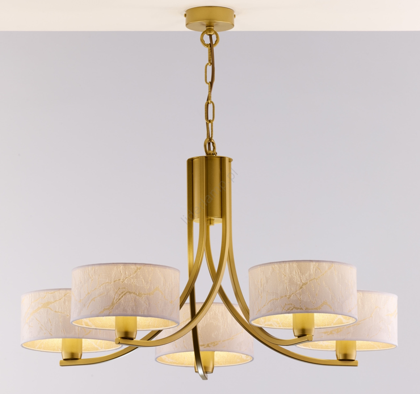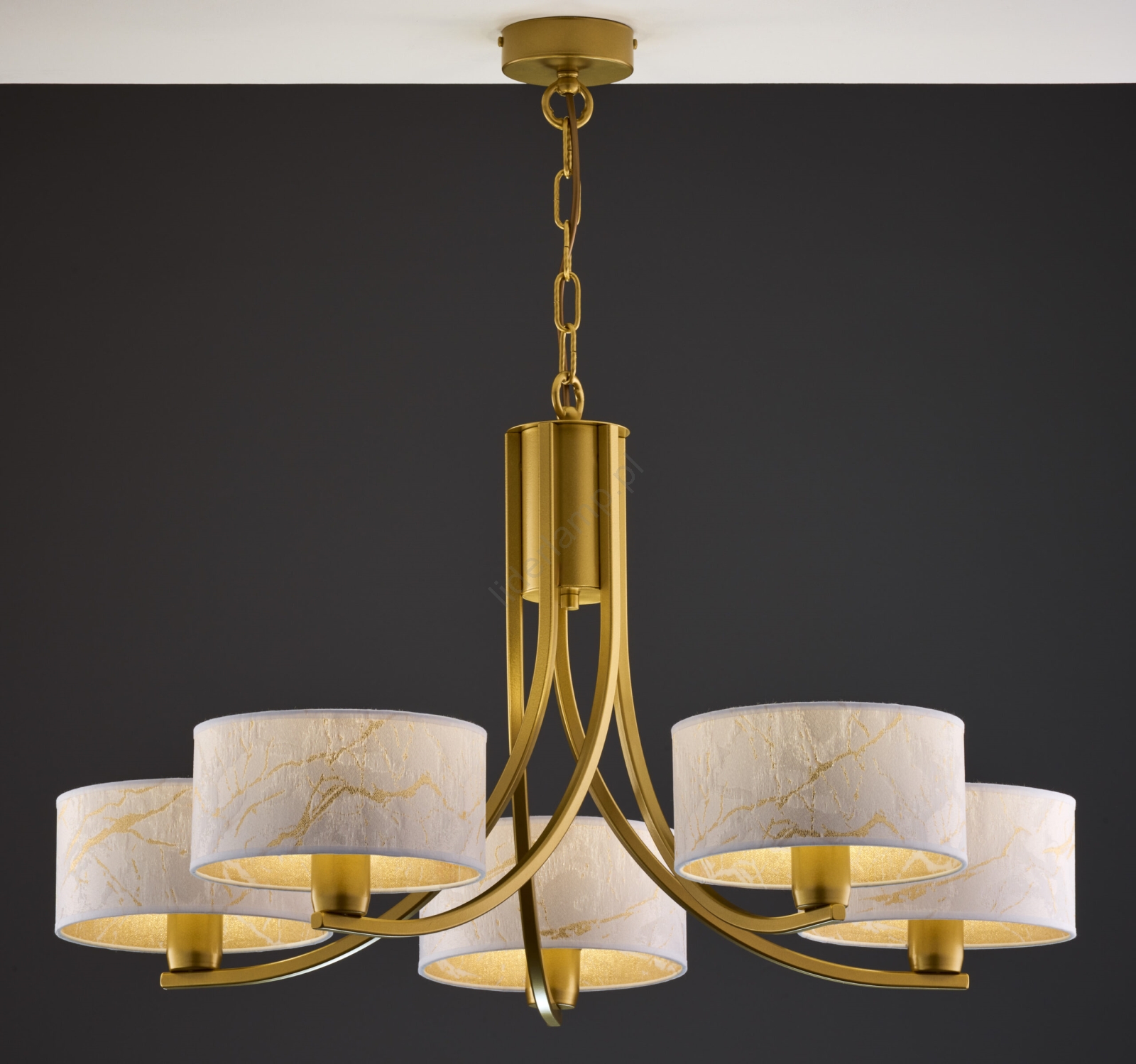 Jupiter 2097 - Żyrandol na łańcuchu ARTHUR 5xE27/15W/230V biały/złoty/dekor marmuru charakteryzuje się ładnym i funkcjonalnym designem.  Do lampy pasuje żarówka z trzonkiem E27. Tutaj kupisz inne żarówki w korzystnych cenach. Będziesz mieć ciekawy dodatek do swojego domu.