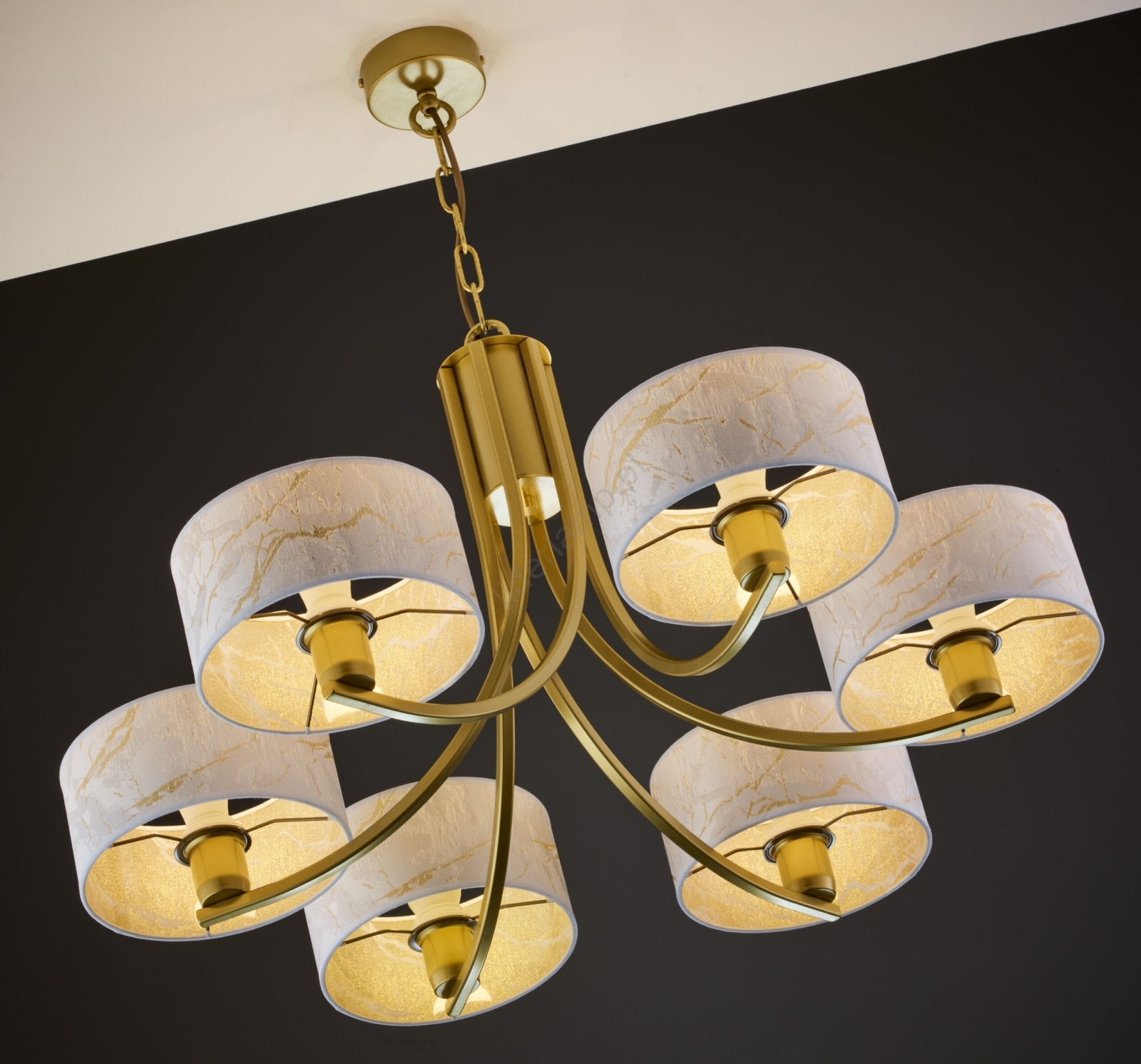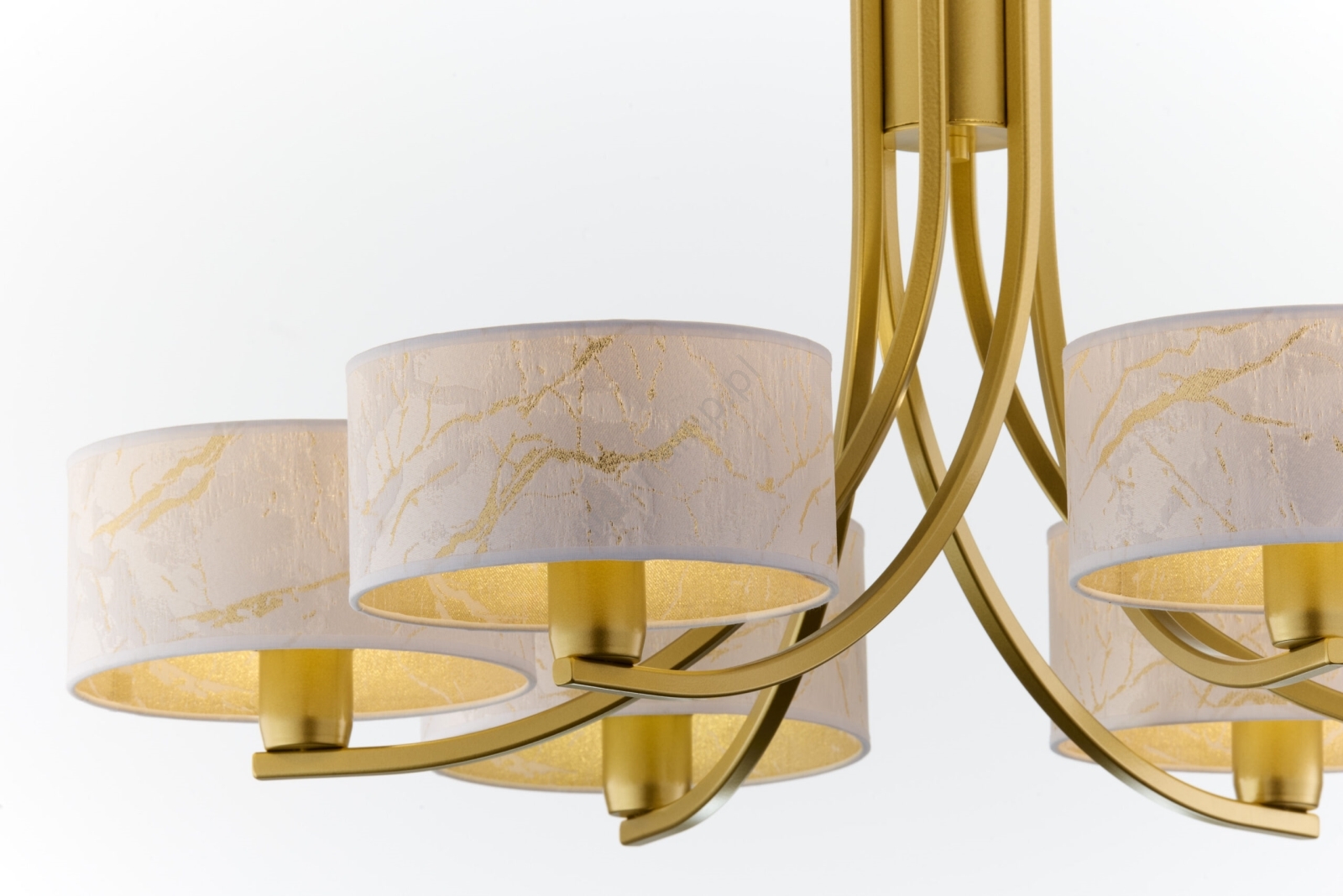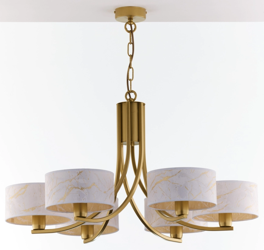 Jupiter 2098 - Żyrandol na łańcuchu ARTHUR 6xE27/15W/230V biały/złoty/dekor marmuru charakteryzuje się ładnym i funkcjonalnym designem.  Do lampy pasuje żarówka z trzonkiem E27. Tutaj kupisz inne żarówki w korzystnych cenach. Będziesz mieć ciekawy dodatek do swojego domu.