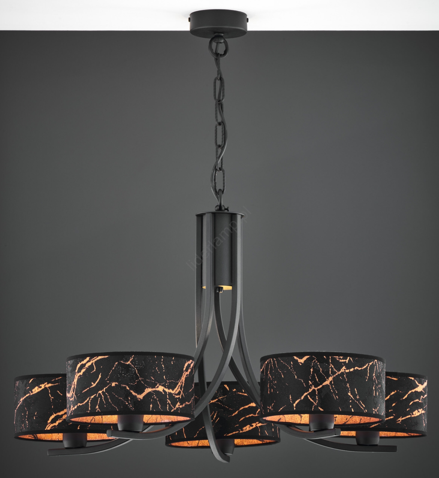 • Jupiter 2107 - Żyrandol na łańcuchu ARTHUR 5xE27/15W/230V czarny/pomarańczowy/dekor marmuru