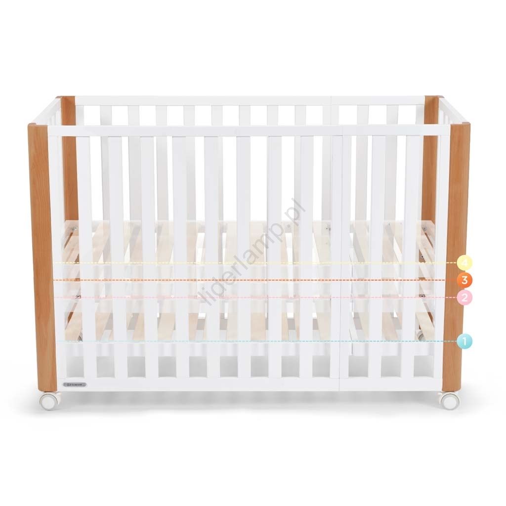 • Regulowana wysokość dna: 3 poziomy w dostawce i 4 w łóżeczku.
