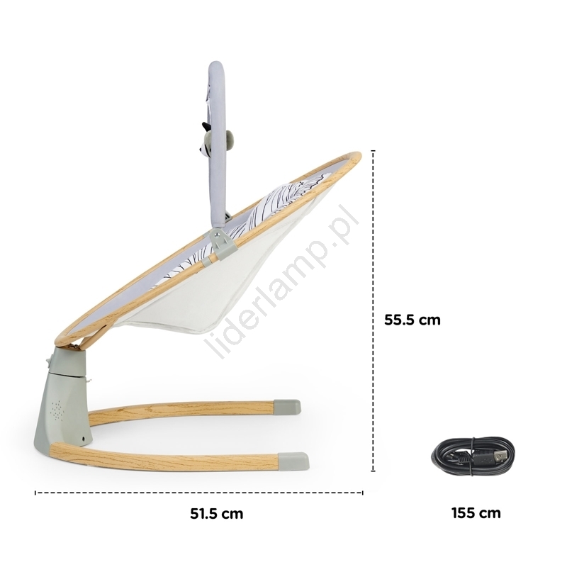 • 5-stopniowa regulacja prędkości kołysania i timer, który można ustawić na 8, 15 i 30 minut (kiedy timer jest wyłączony, leżaczek nadal działa).