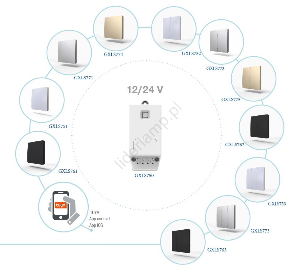 • Włącznik można zamontować praktycznie wszędzie: na ścianie, drzwiach, szkle lub panelu.