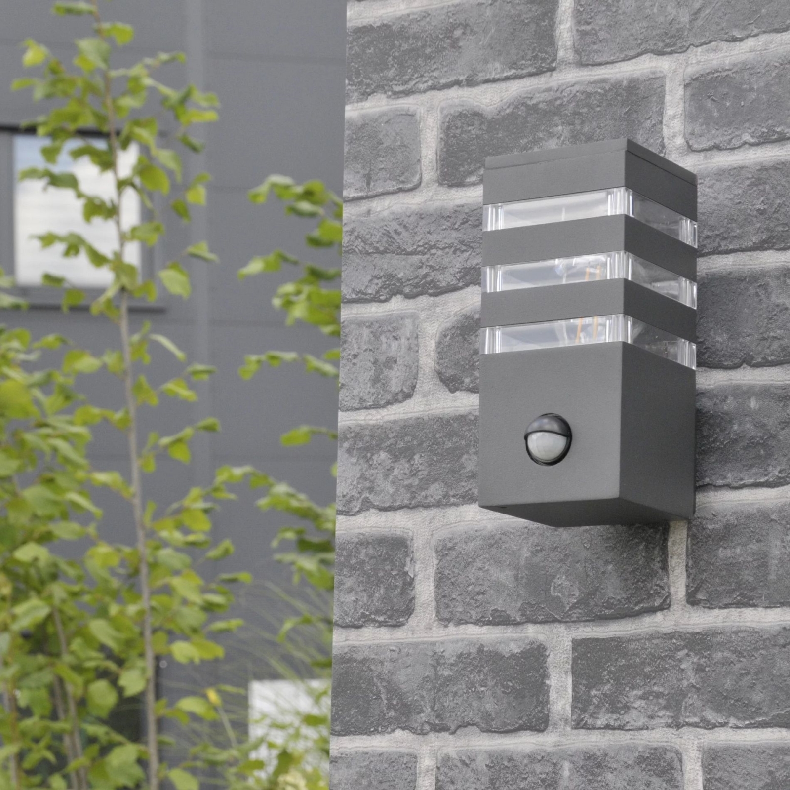 Zewnętrzna lampa ścienna z czujnikiem TEKSAS 1xE27/12W/230V IP44 antracyt