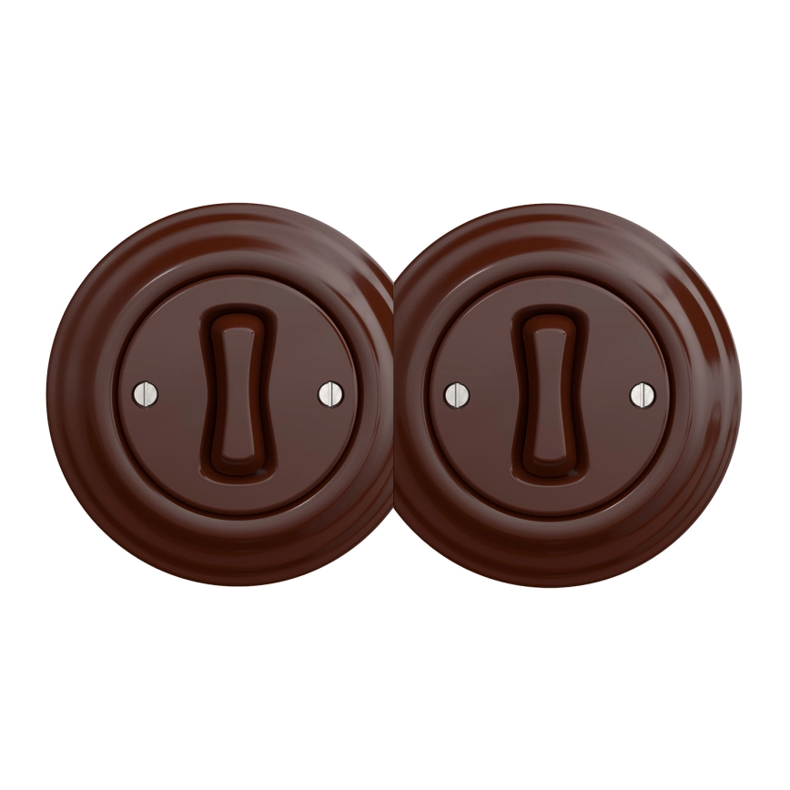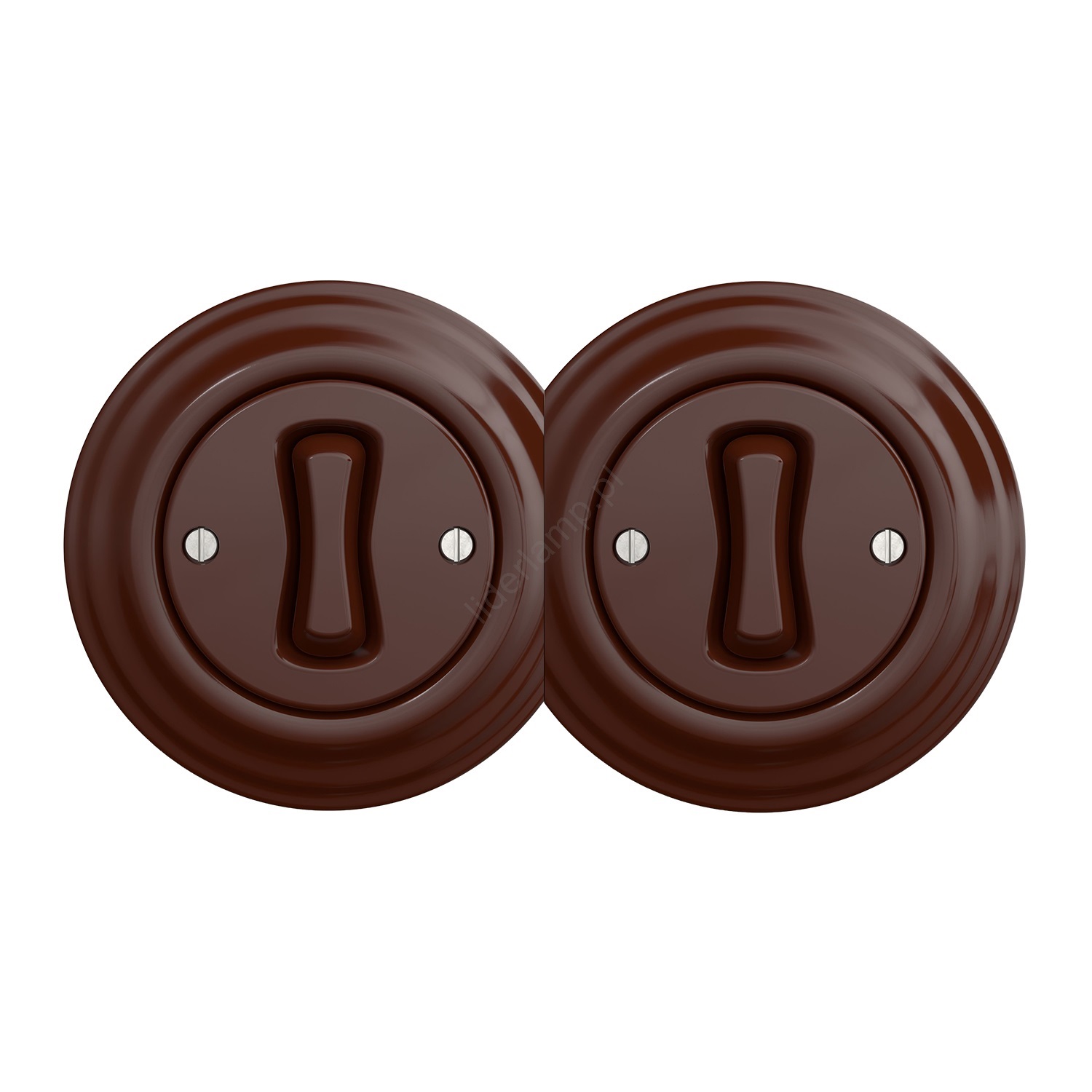 Kliklap - Podwójny retro włącznik jednobiegunowy z ramką nr 1, brązowy
