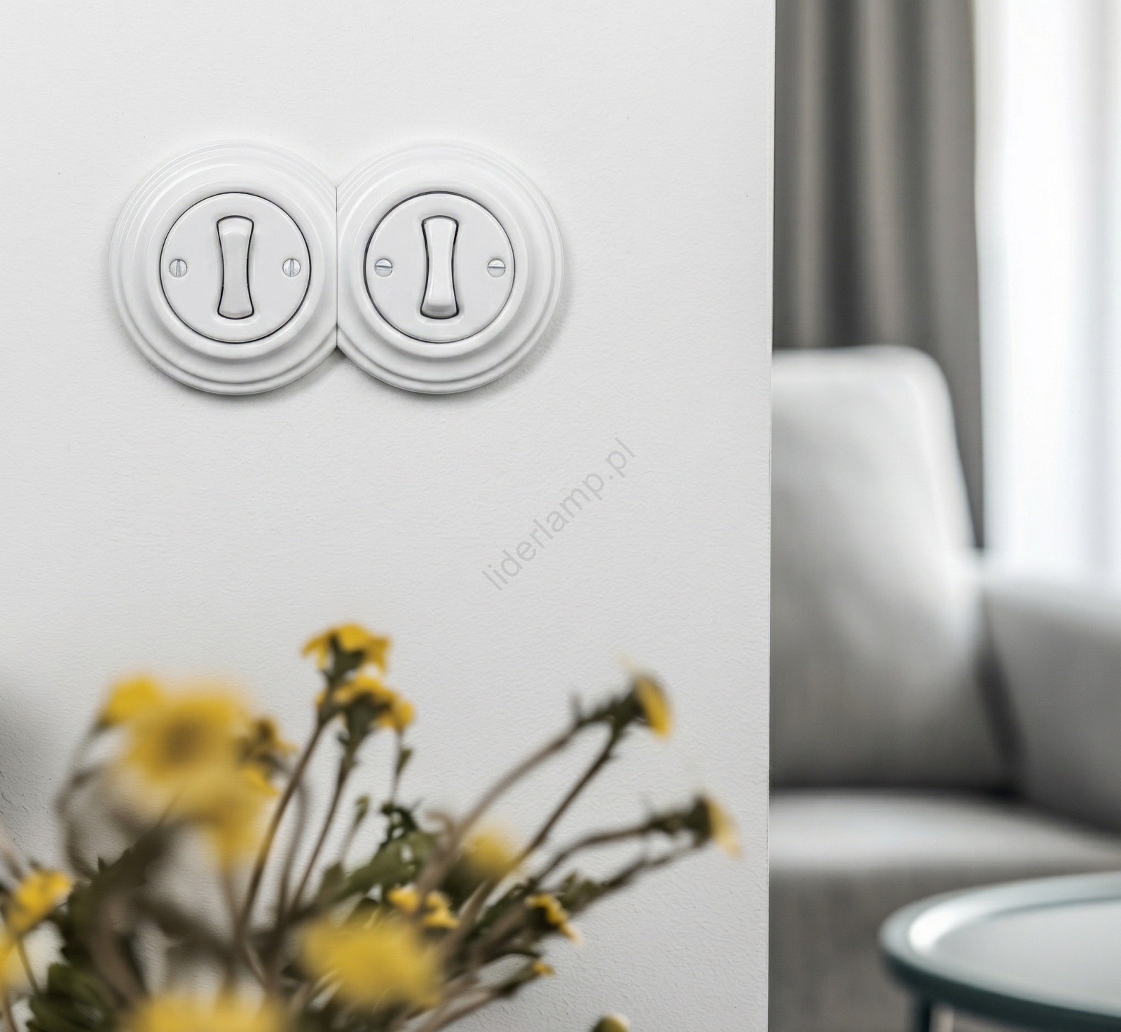 • Kliklap - Podwójny retro wyłącznik jednobiegunowy z ramką nr 1, biały, ceramiczny