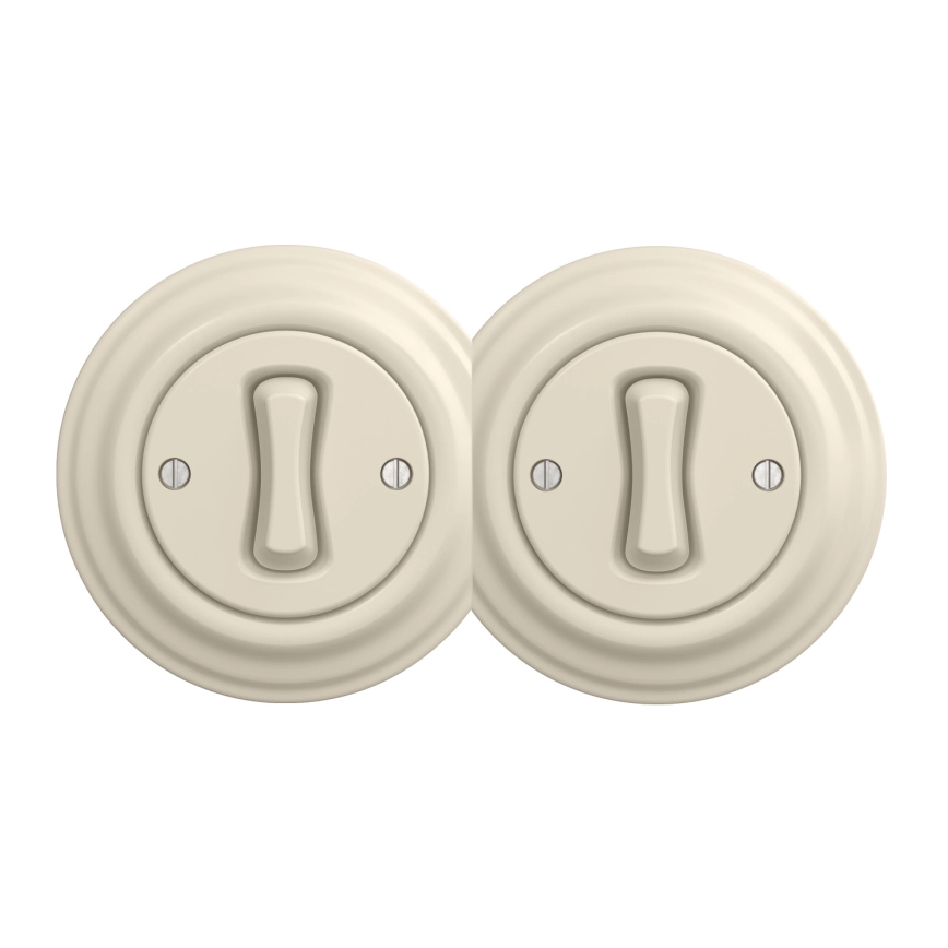 Kliklap - Podwójny retro wyłącznik jednopolowy z ramką nr 1, beżowy