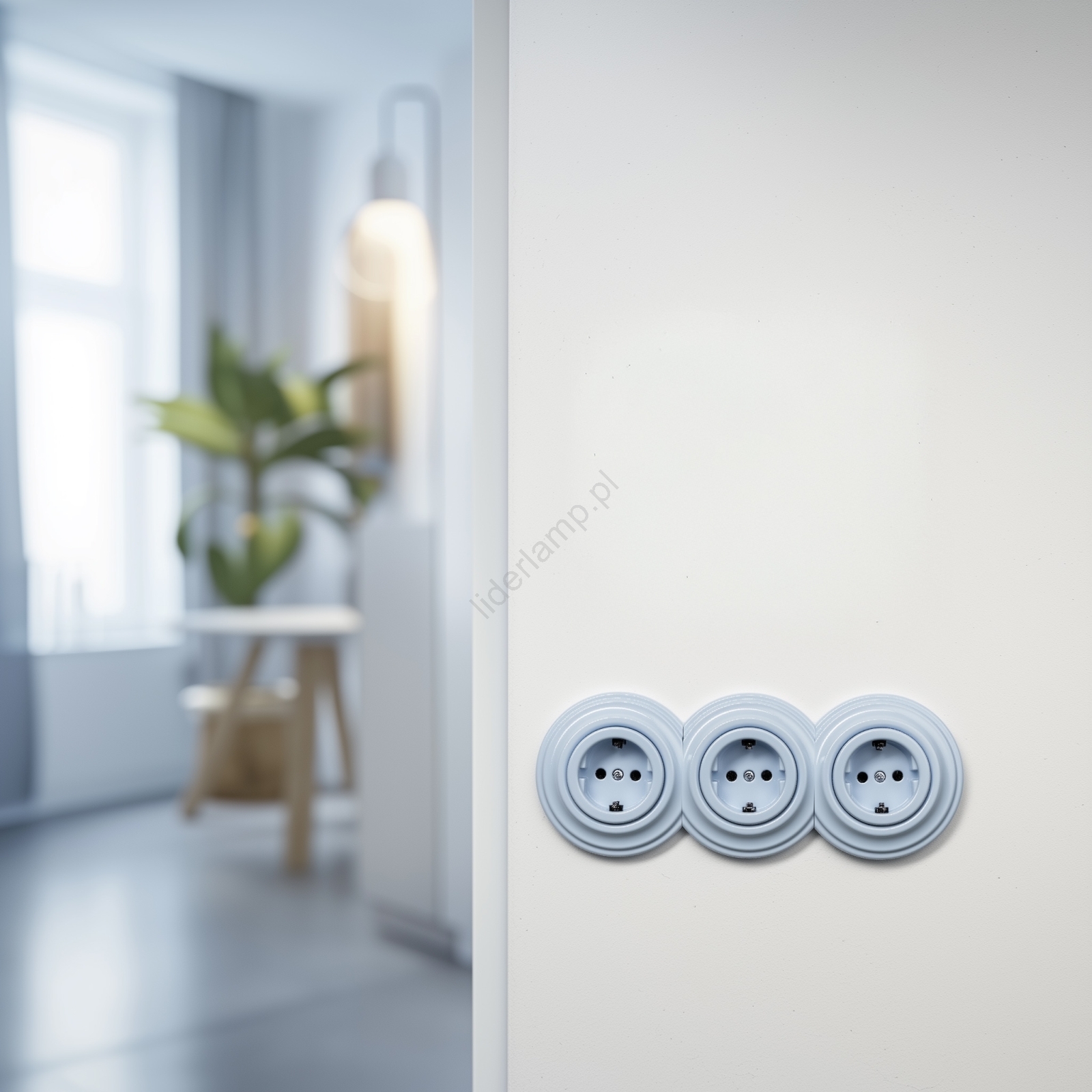 • Kliklap - Potrójne retro gniazdko domowe z ramką SCHUKO 230V, niebieskie