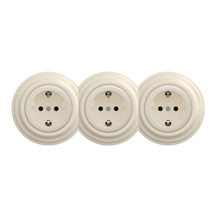 Kliklap - Potrójne retro gniazdo ścienne z ramką SCHUKO 230V beżowe