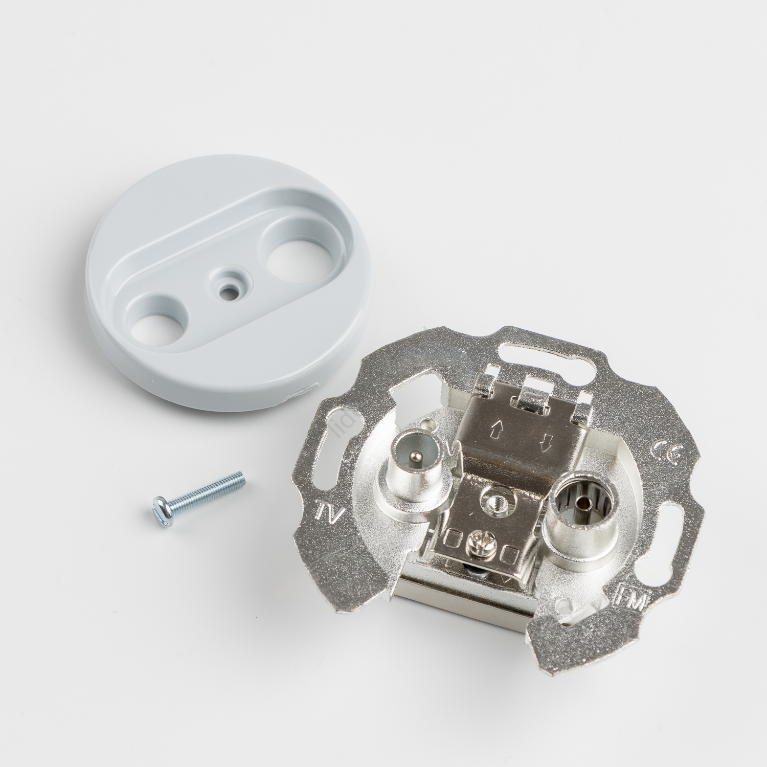 • Kliklap - Retro gniazdo abonenckie TV+R (końcowe) z ramką ceramiczną, białe