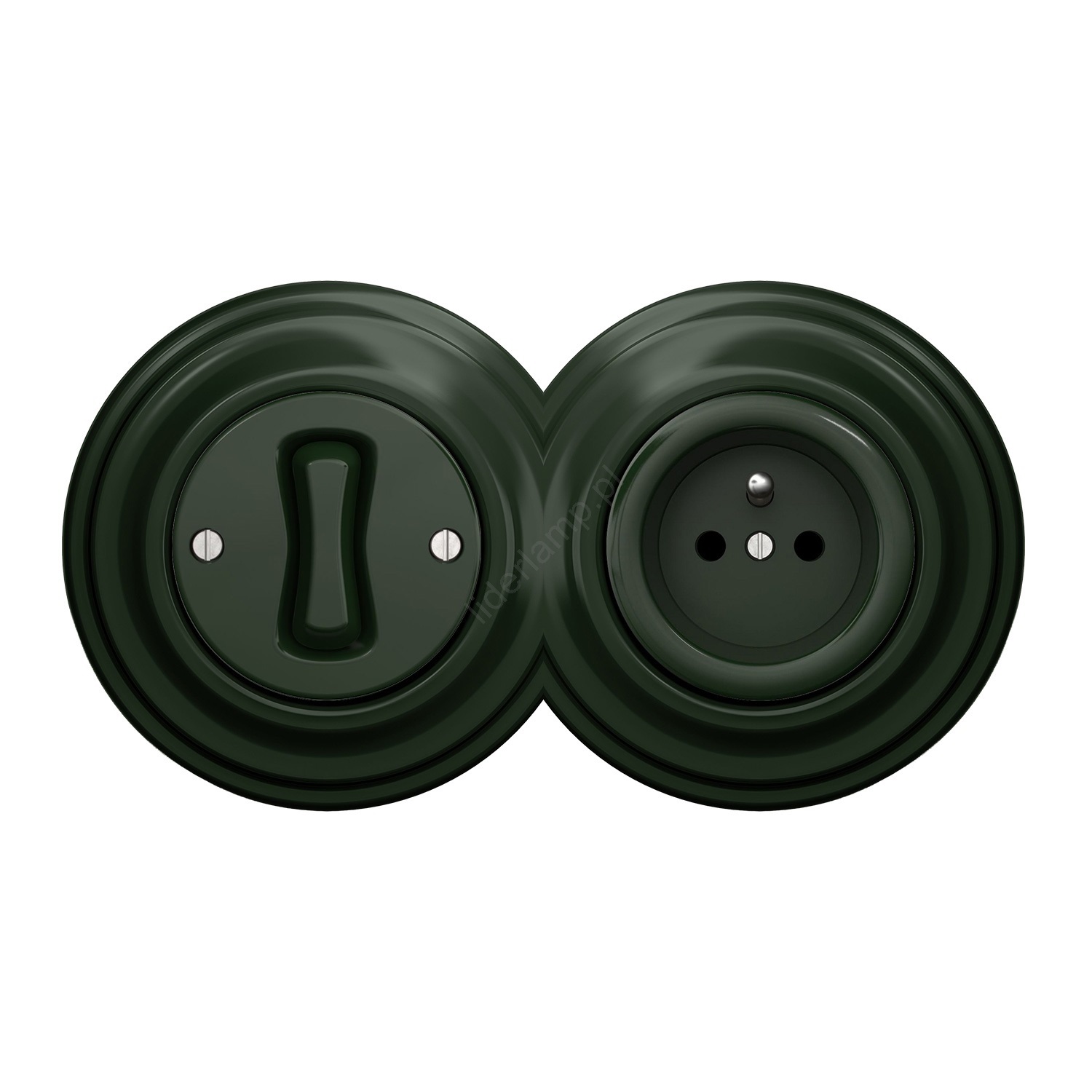 Kliklap - Retro wyłącznik jednobiegunowy nr 1 i gniazdo 230 V z ramką w kolorze zielonym