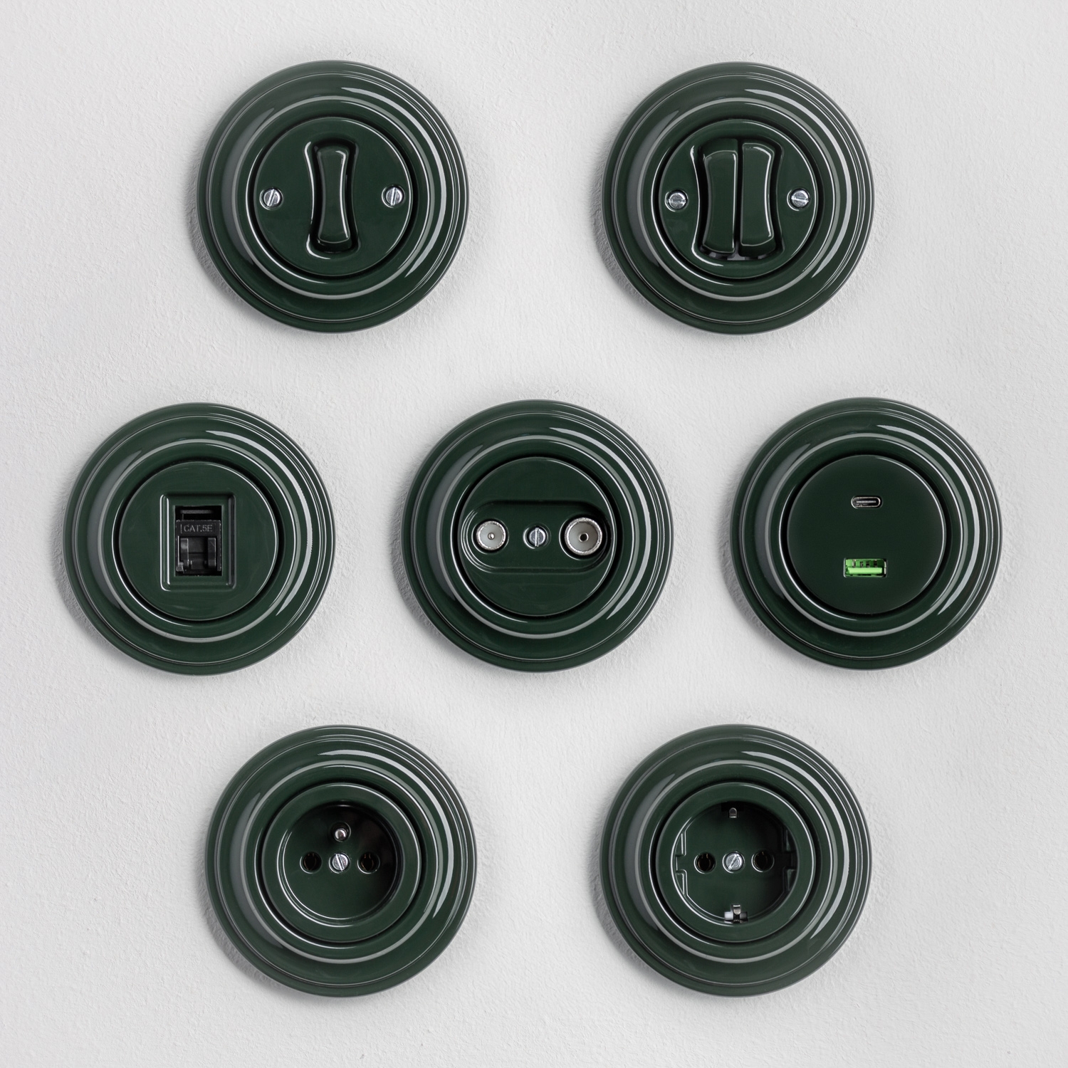 • Kliklap - Retro podwójny przycisk z ramką, ceramiczny, biały