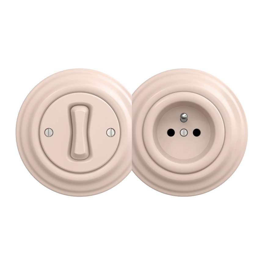 Kliklap - Retro włącznik jednobiegunowy nr 1 i gniazdo 230V z ramką pudrowy róż