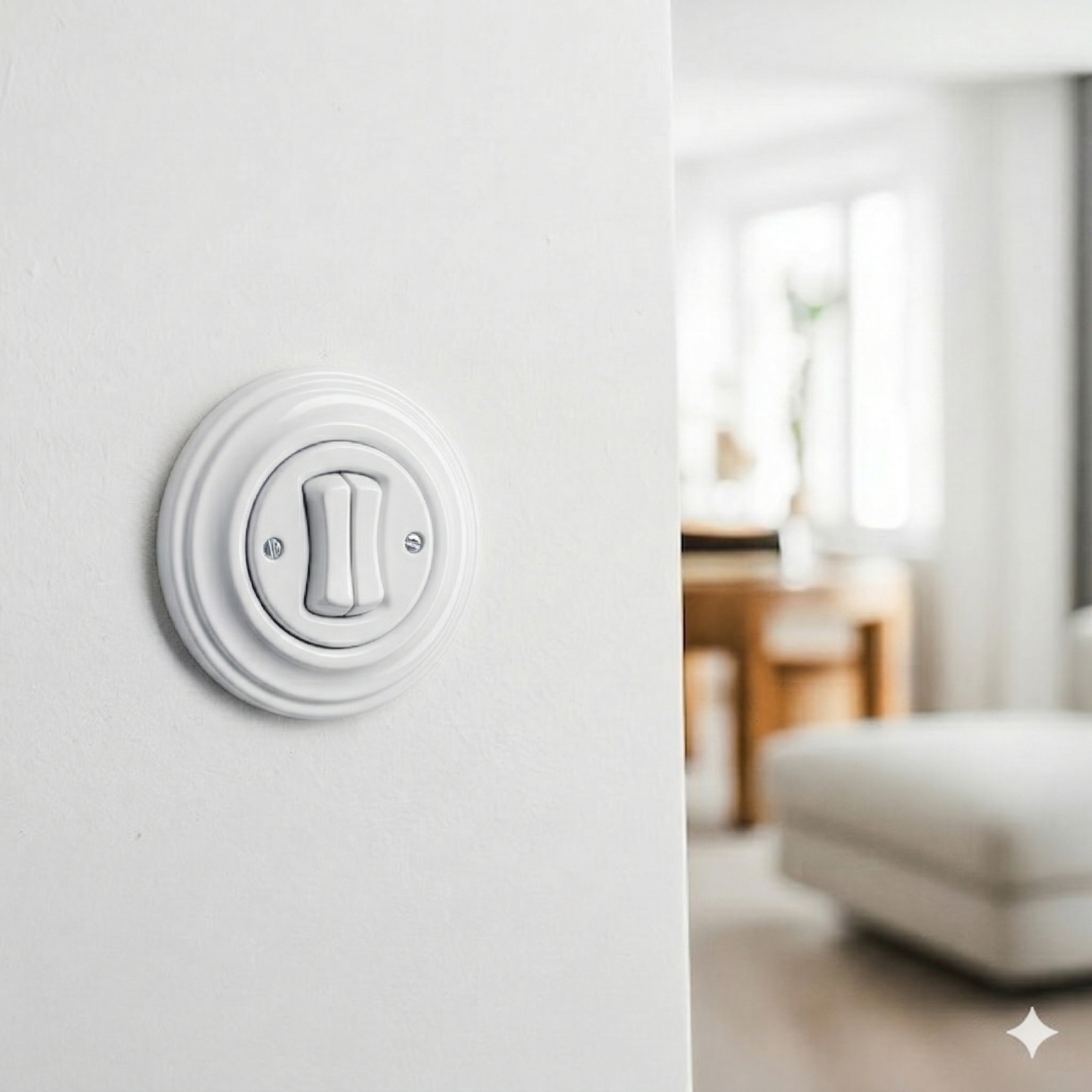 • Kliklap - Retro biały ceramiczny wyłącznik z serii z ramką nr 5