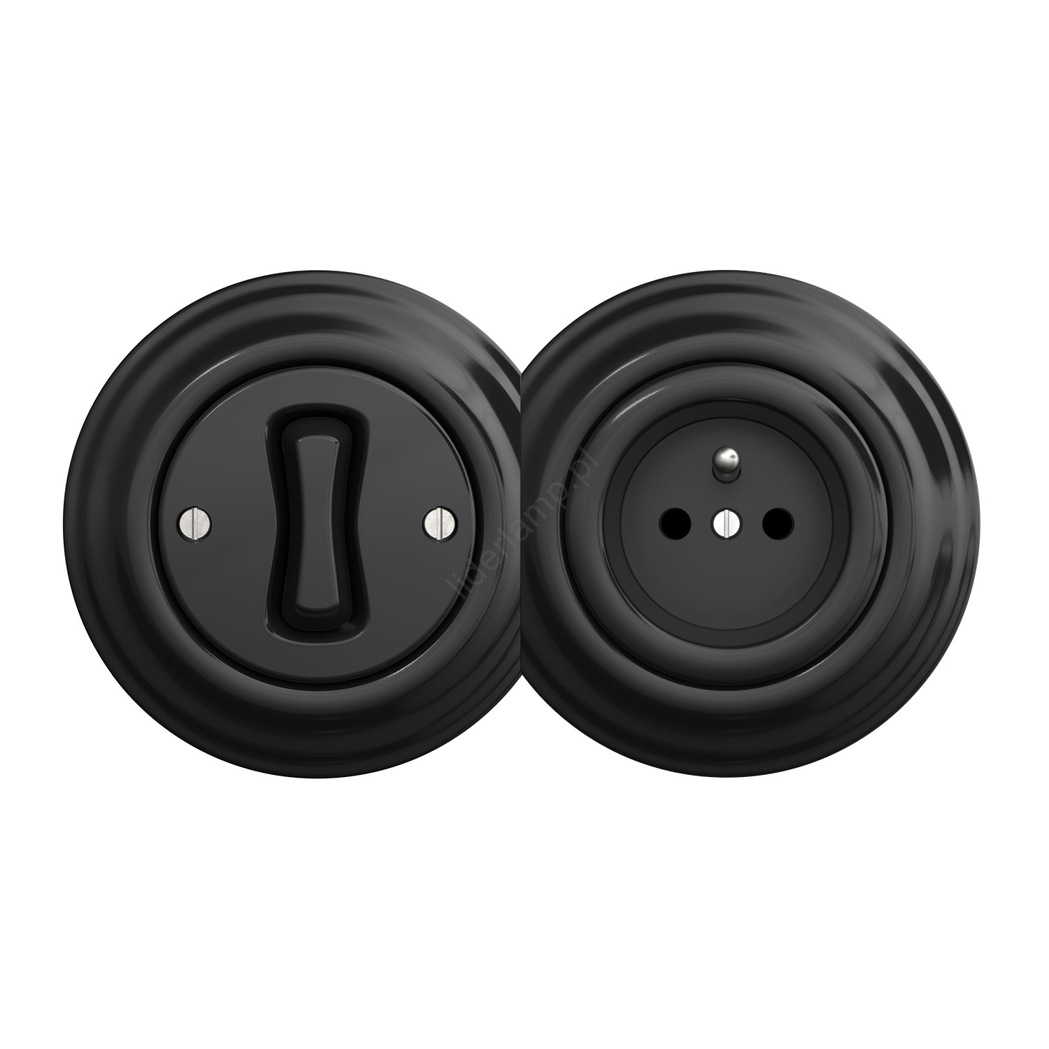 Kliklap - Retro jednobiegunowy wyłącznik nr 1 i gniazdo 230V z ramką czarne