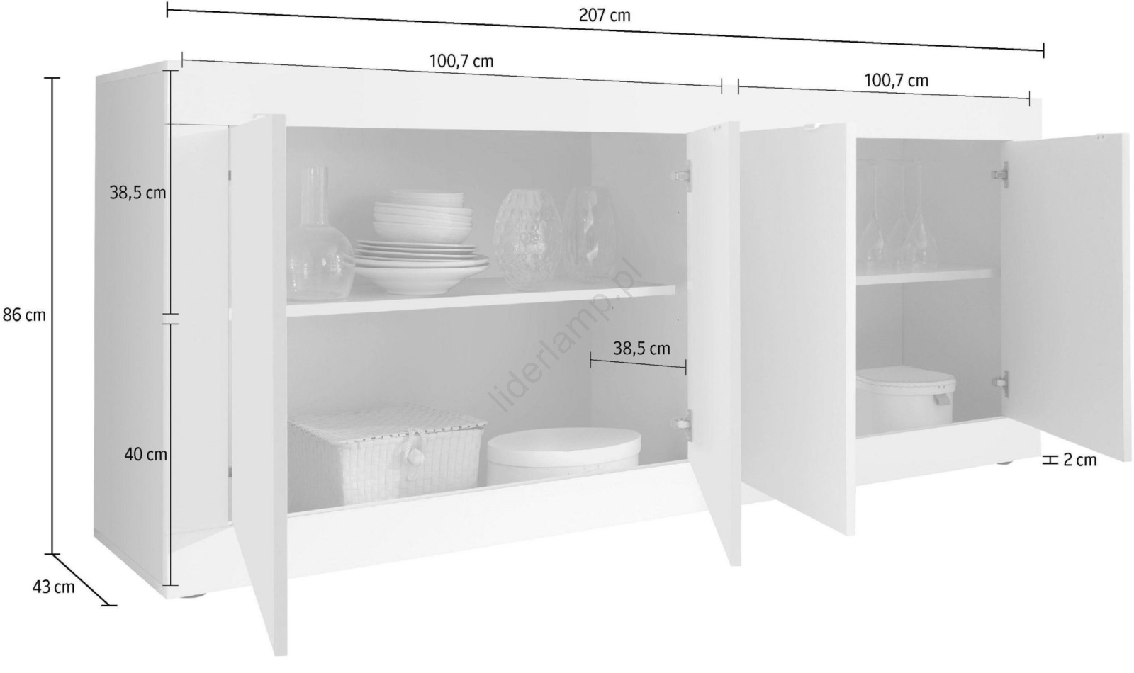 • Dzięki szafkom i półkom oferuje obszerną przestrzeń do przechowywania, idealną do organizacji codziennych przedmiotów.