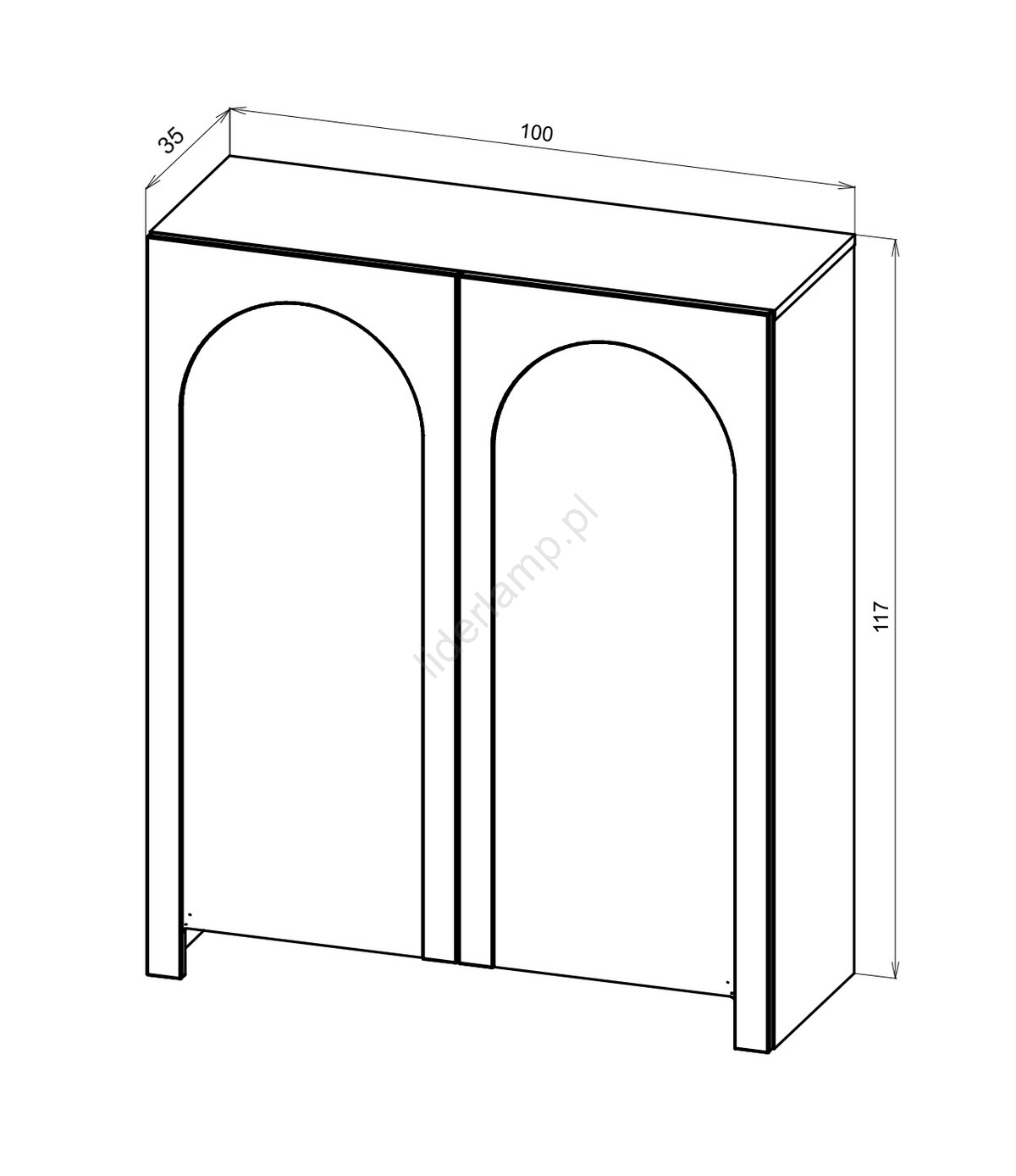 • Posiada dwie drzwiczki, z których każda jest ozdobiona delikatnym łukowatym wzorem, tworzącym wyrafinowany efekt wizualny.