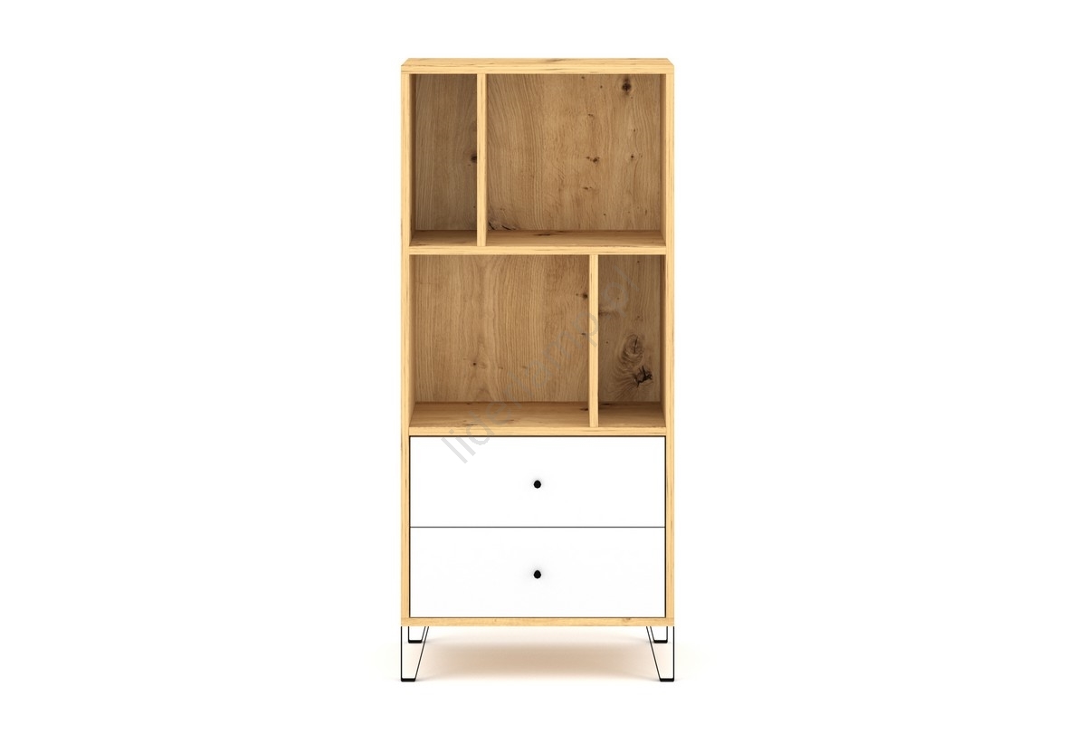 • Posiada cztery otwarte półki i dwie szuflady, które umożliwiają przejrzyste przechowywanie.