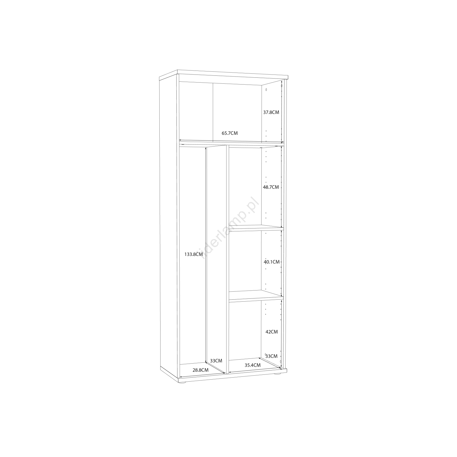 • Dzięki półkom oferuje obszerną przestrzeń do przechowywania, ułatwiając organizację przedmiotów codziennego użytku.