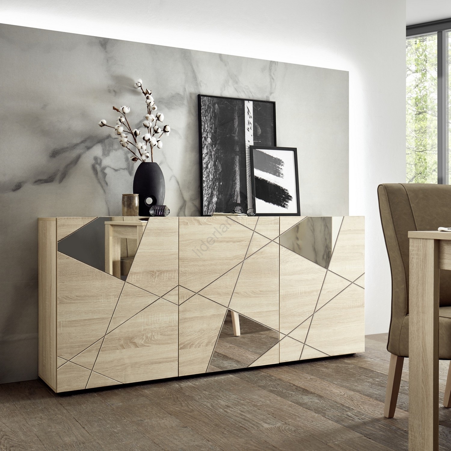 • Dzięki szafkom komoda zapewnia obszerną przestrzeń do przechowywania, ułatwiając organizację przedmiotów codziennego użytku.