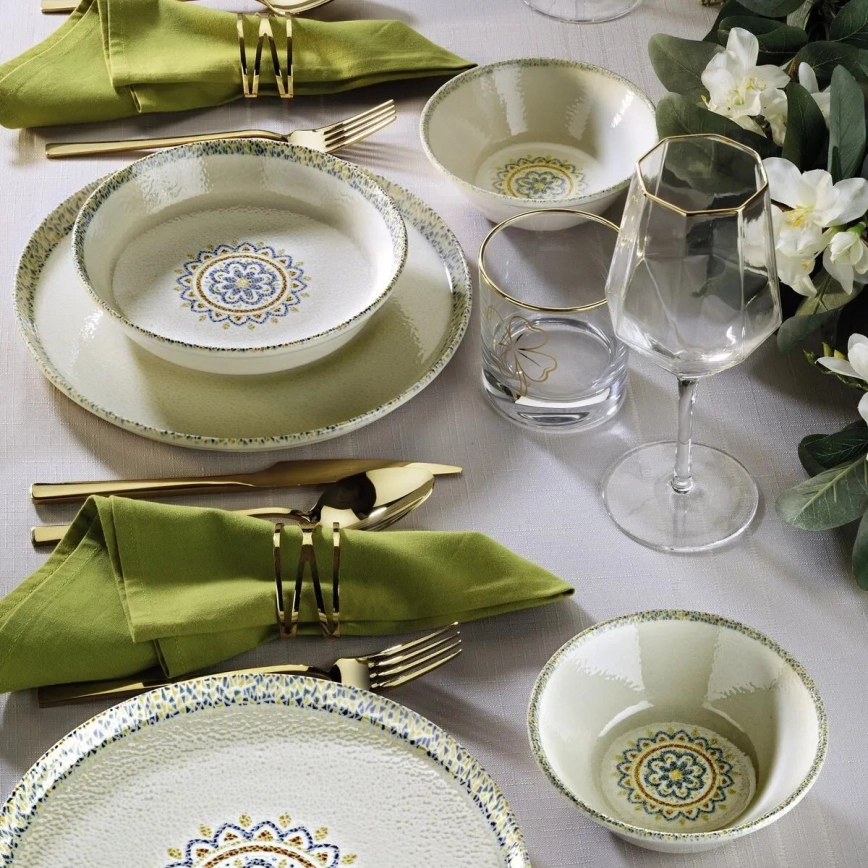 • Elegancki zestaw naczyń stołowych, idealny zarówno do codziennego użytku, jak i na uroczyste okazje.