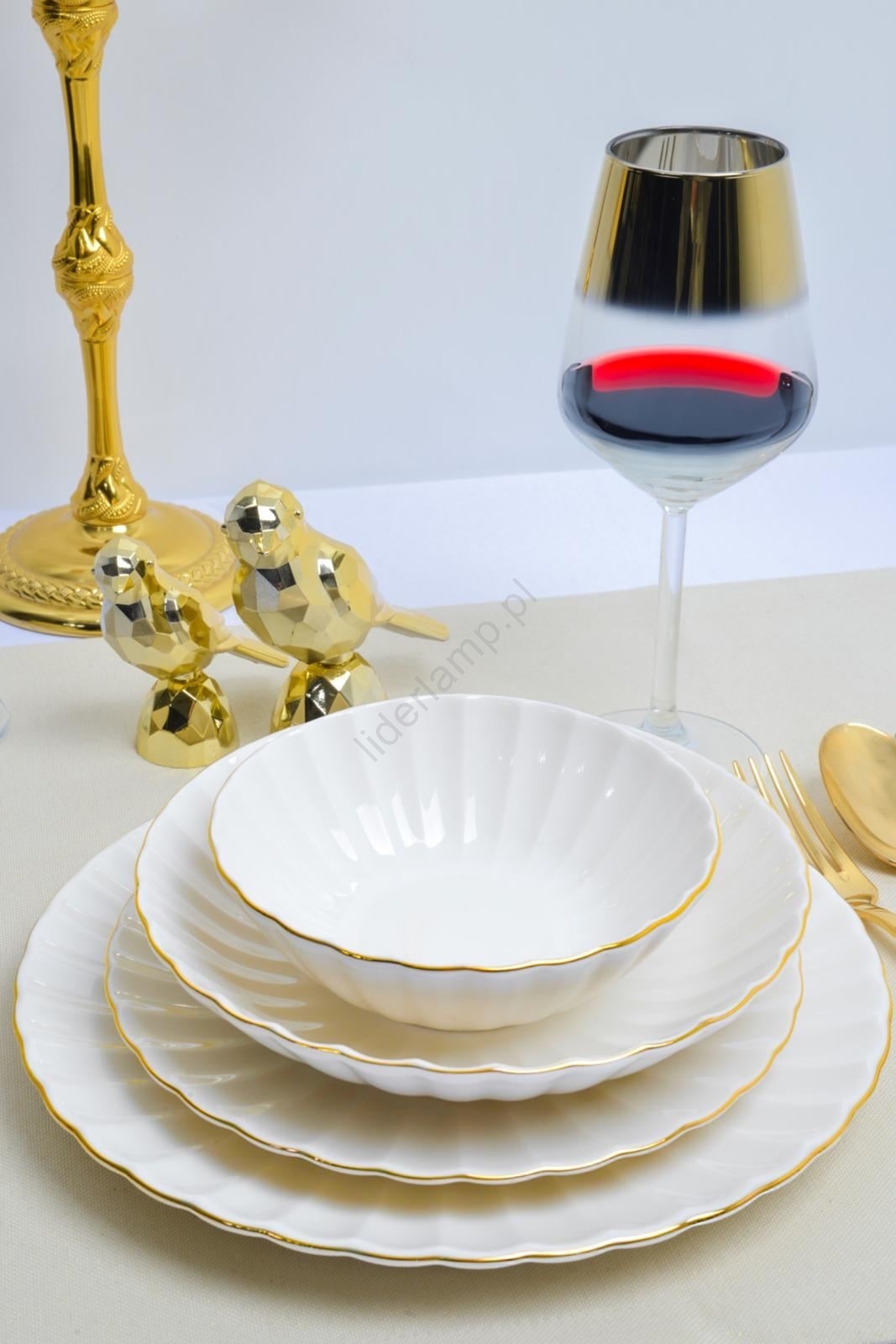 ReviewsWidget_ReviewsAboutUs Komplet obiadowy 24-elementowy, biały ze złotymi akcentami, porcelana | Liderlamp.pl