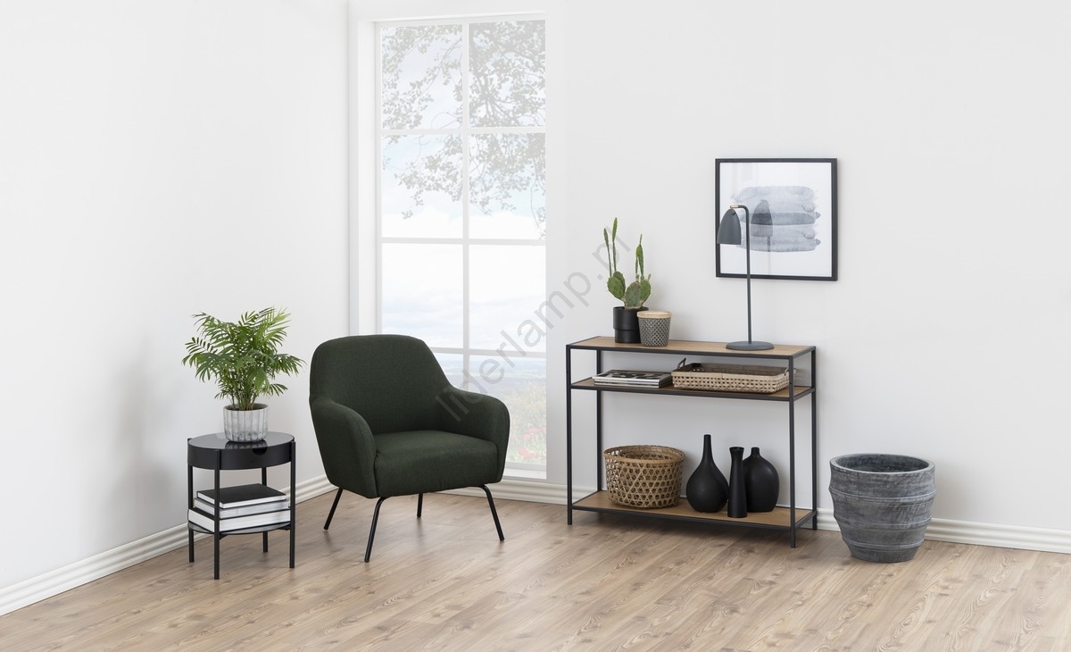 • Blat i 2 półki w matowym wykończeniu craft, podstawa z matowej czarnej, grubo malowanej proszkowo stali.
