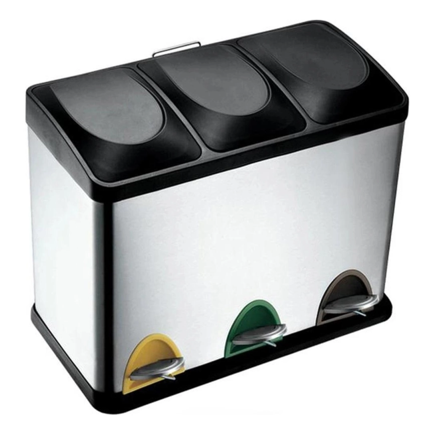 • Trzy oddzielne wewnętrzne pojemniki (każdy o pojemności 15 l) umożliwiają łatwe sortowanie odpadów – np. plastiku, papieru i bioodpadów.