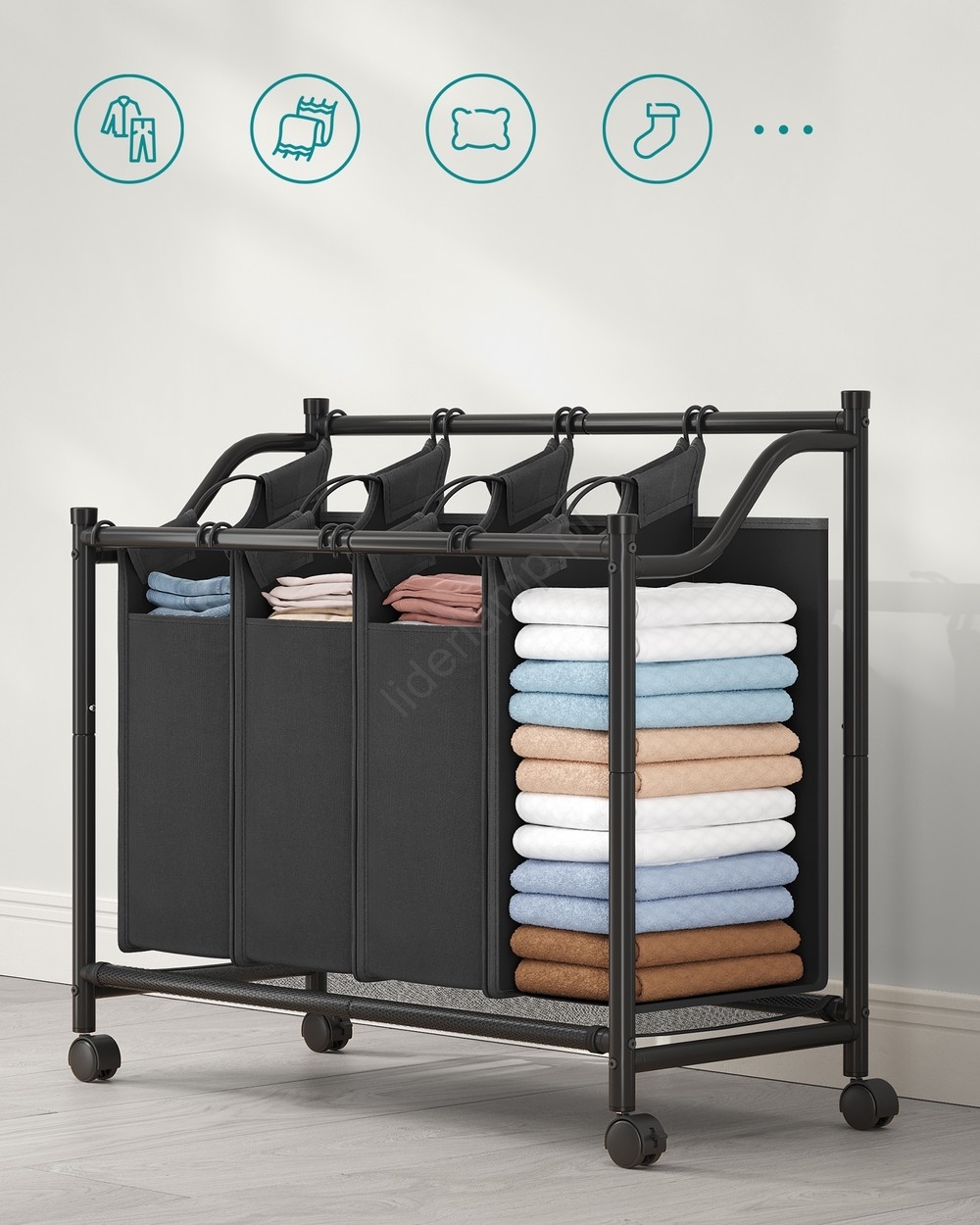 • Dzięki 4 kółkom możesz łatwo przestawić ten kosz na bieliznę z sypialni lub łazienki do pralni.