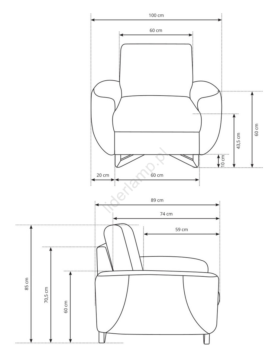 • Głębokość siedziska 59 cm zapewnia wystarczającą przestrzeń do swobodnego i ergonomicznego siedzenia.