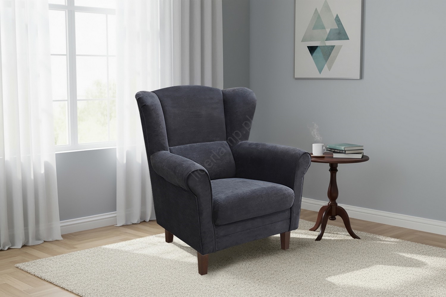• Fotel o ponadczasowym wzornictwie, idealny do salonu lub sypialni.