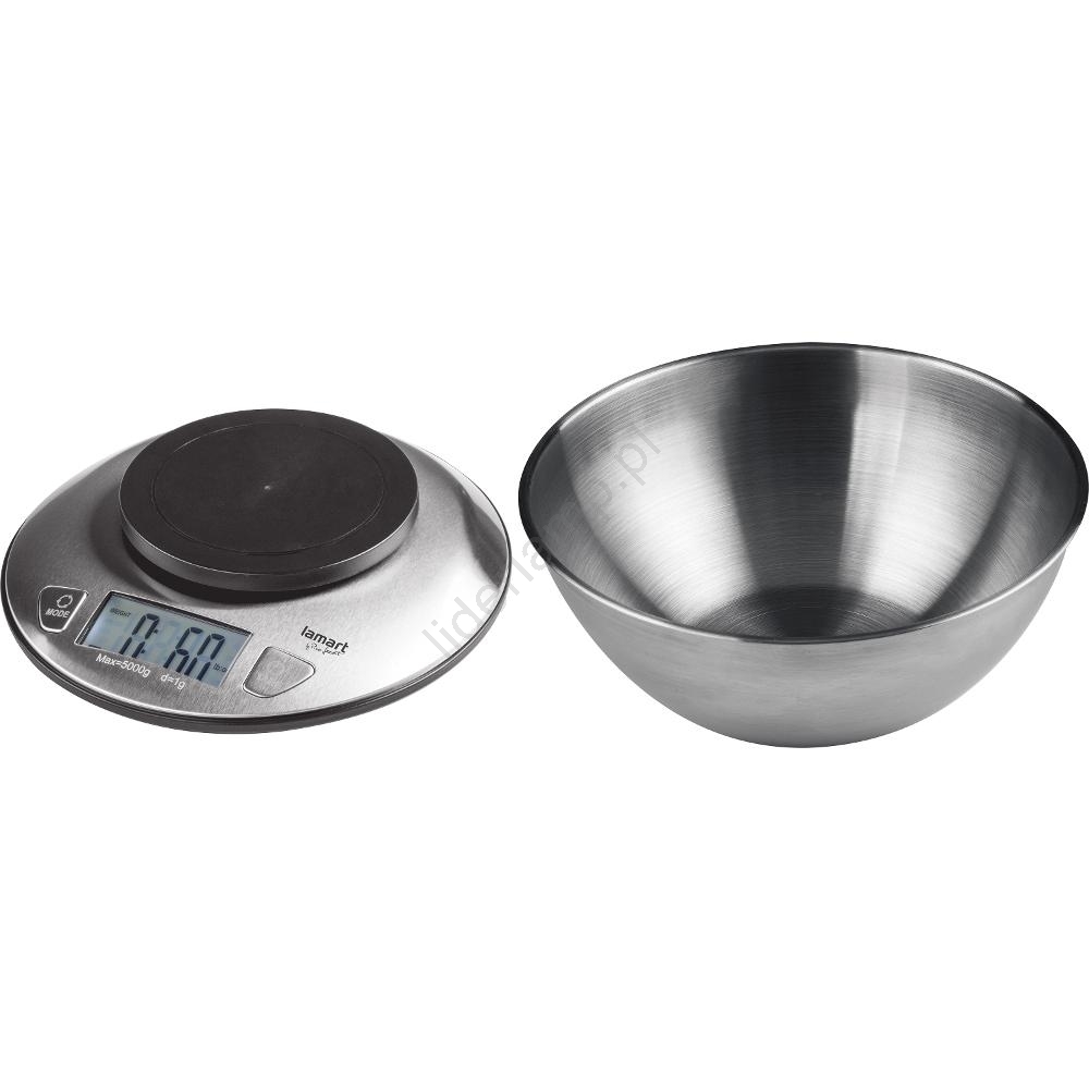 Lamart - Cyfrowa waga kuchenna z wyświetlaczem LCD i miską, zasilanie 2xAAA, stal nierdzewna