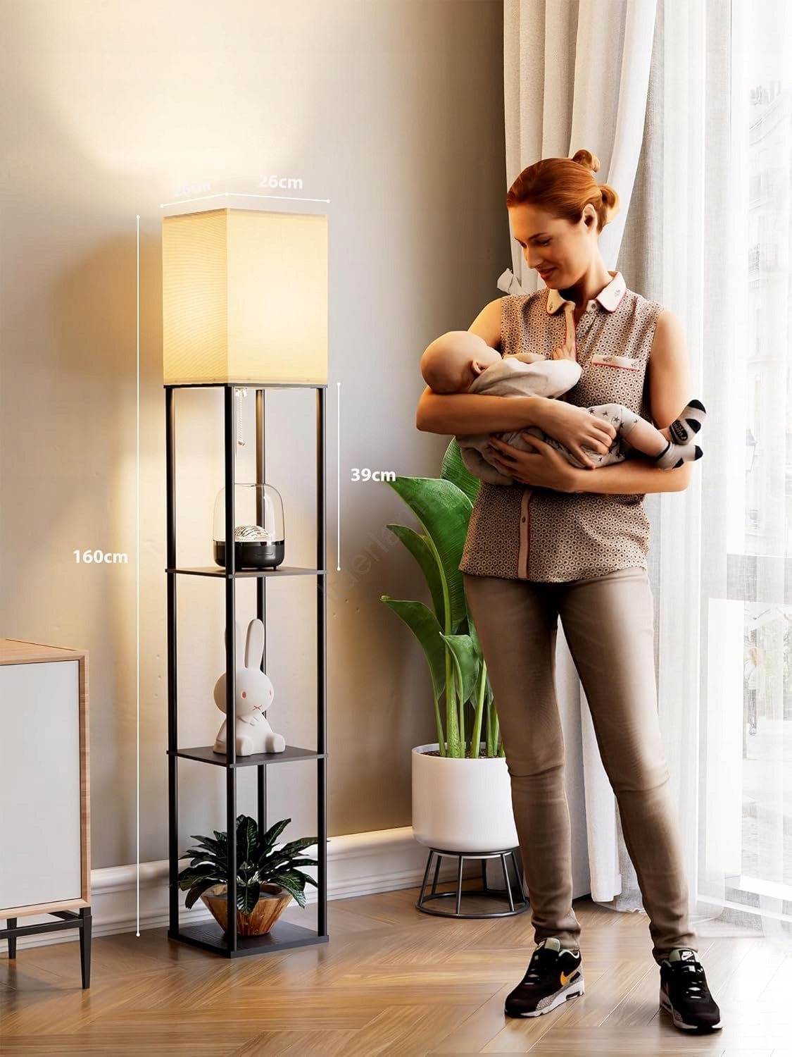 Lampa podłogowa z półkami 1xE27/40W/230V czarna/biała