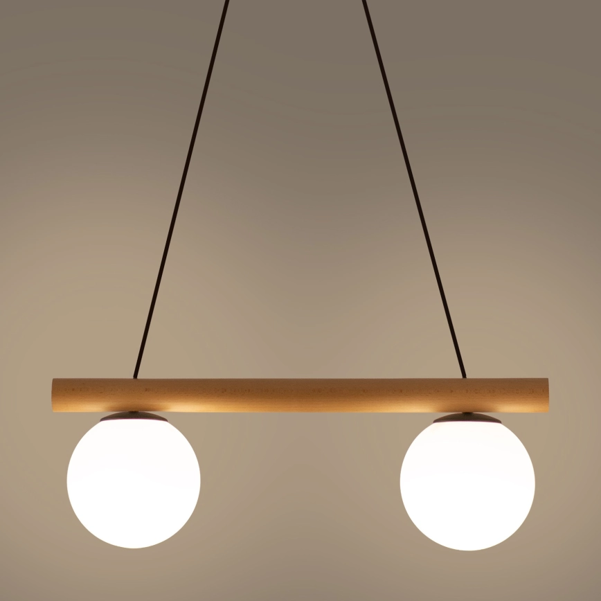 • Żyrandol na lince WOODSTOCK 2xE27/15W/230V drewno/kremowy