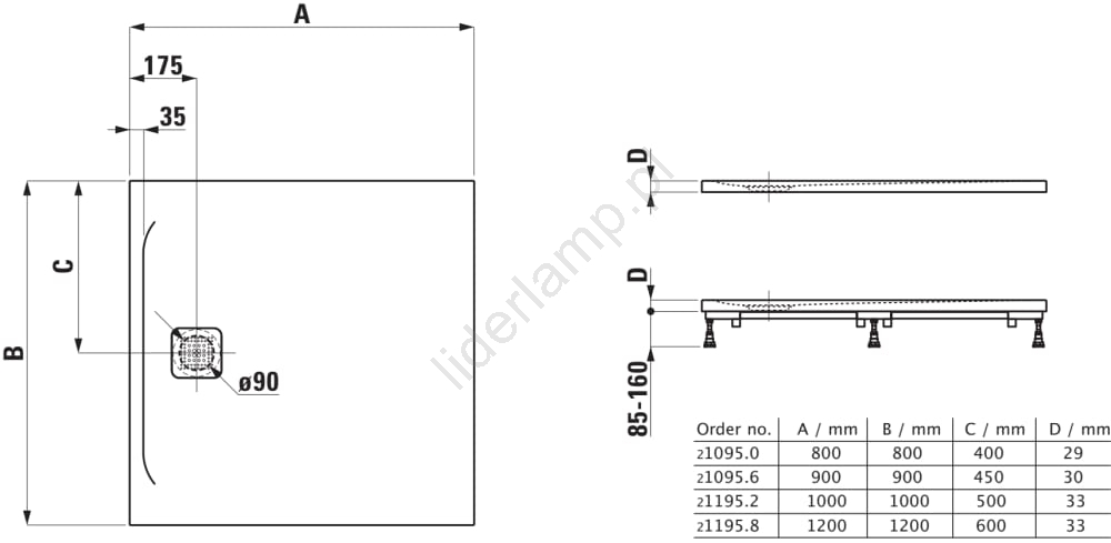 ReviewsWidget_ReviewsAboutUs LAUFEN H2109560000001 - Kwadratowy brodzik prysznicowy PRO 90x90 cm marbond/biały | Liderlamp.pl